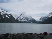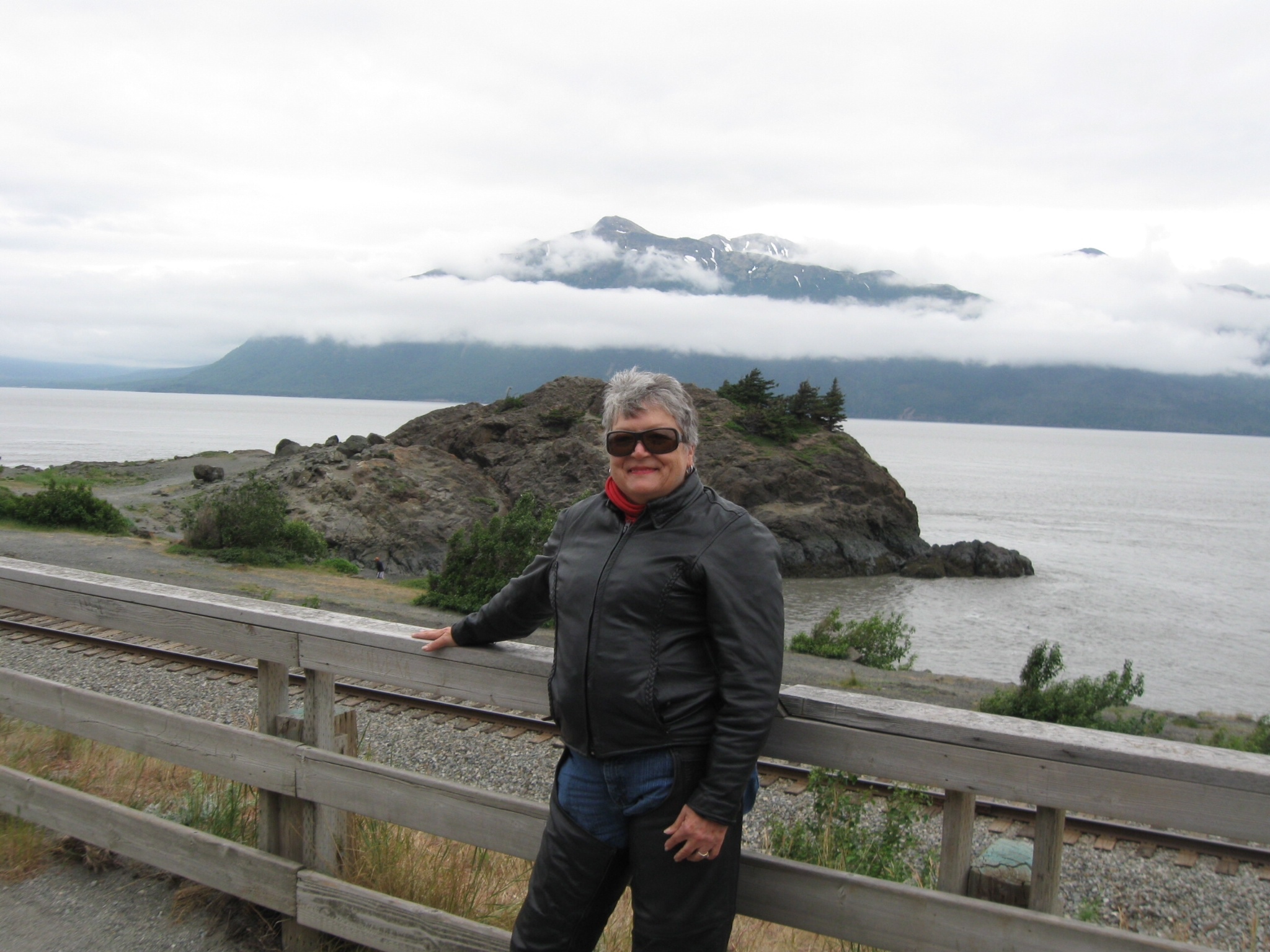 That could be the whole blog for today. A month after we embarked on the Great Alaska Adventure we arrived at Alaska’s Playground: The Kenai Peninsula. What a gorgeous country. As I expected, the day was overcast and low-hanging clouds obscured the tops of most of the peaks as we rode along the northern side of Turnagain Arm on the way to the Kenai. In some instances, though, the tops of the snow-streaked mountains reared majestically above the cloud layer. In some ways, I’m glad my introduction to the peninsula came not on a bright blue-sky day with plenty of sunshine. Today, I think, with cold and gray captured the essence of this spit of land on Alaska’s southern coast. The temperature probably didn’t climb above 60 all day. Properly dressed for the ride, Marilyn and I cruised along the mountain-framed highway, absorbing as much of the breathtaking beauty of Alaska as we could.
