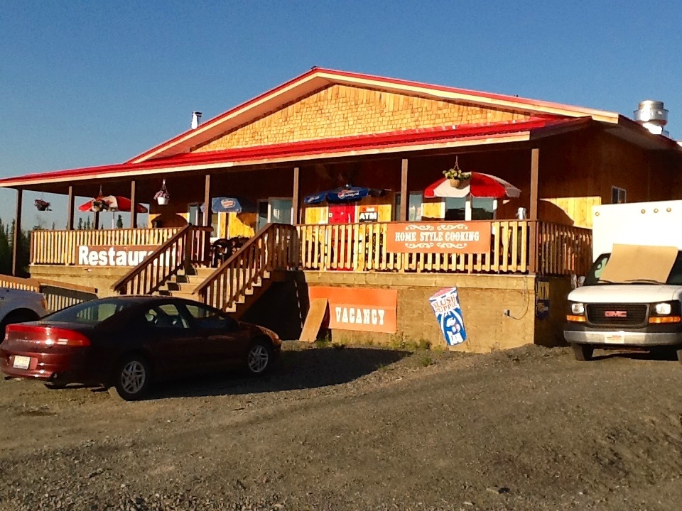 I suppose the first question everyone asks these days is, “Did he have pie.” Well, no. Not today. But I did find a bakery in the middle of Nowhere British Columbia along the Alaska Highway that offered up the finest, hot, dripping 10,000 calorie cinnamon bun you could imagine. The folks at Tetsa River Outfitters have been making these buns at this location for three generations. I think they’ve got it about right. It was only an hour and a half after breakfast, so I only had one. Next to pie (of any kind) this is a great way to start the day.