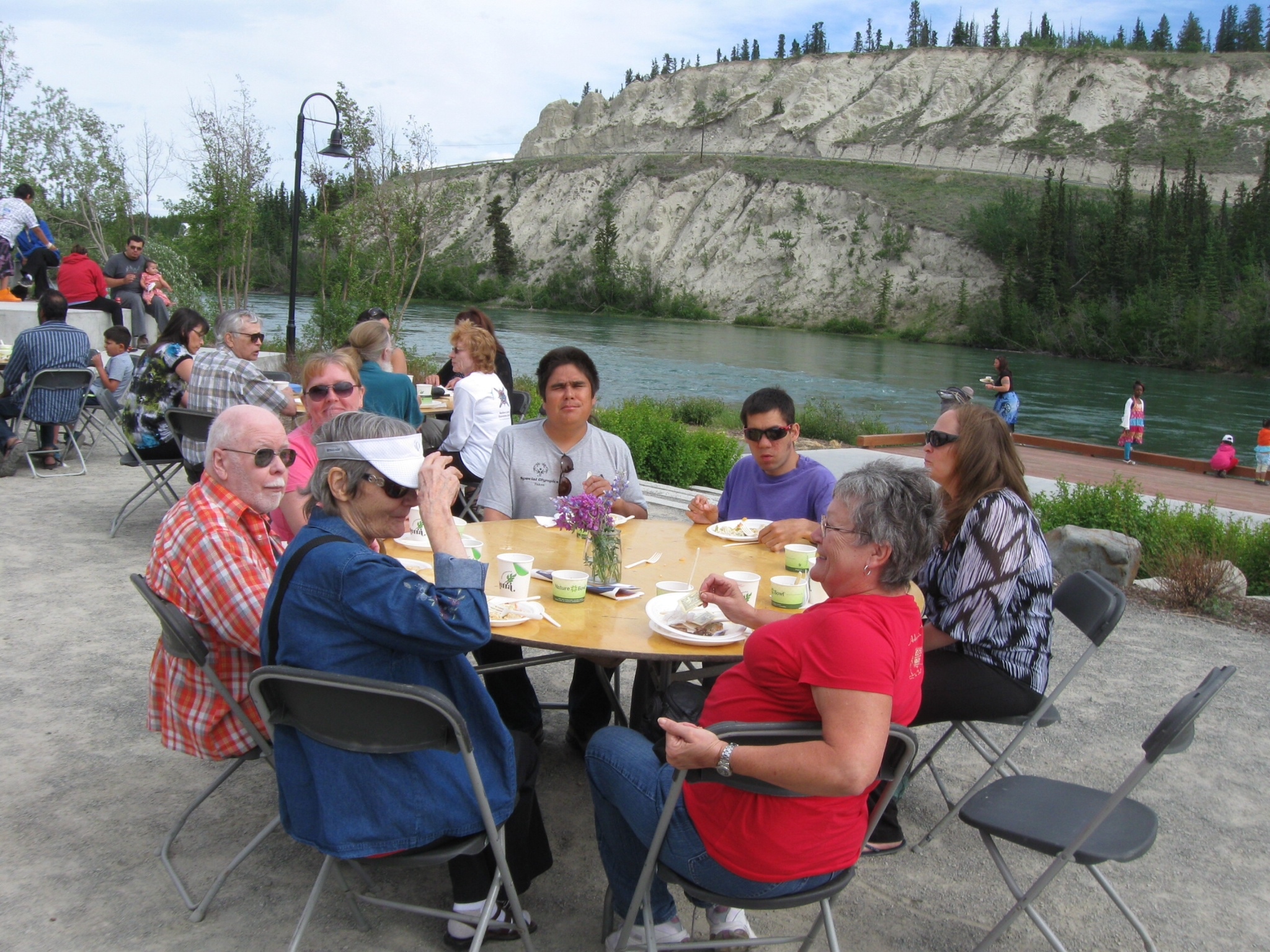 We joined several folks at an open lunch table and, in addition to enjoying a good lunch, enjoyed our conversations about living in Yukon Territory. Everyone at the table said they mostly get used to the 22 hour days in the summer and the 22 hour nights in the winter, though they did admit they slept more in the winter than the summer. And the gorgeous–abeit short–spring, summer and fall, make the very long winter worthwhile.