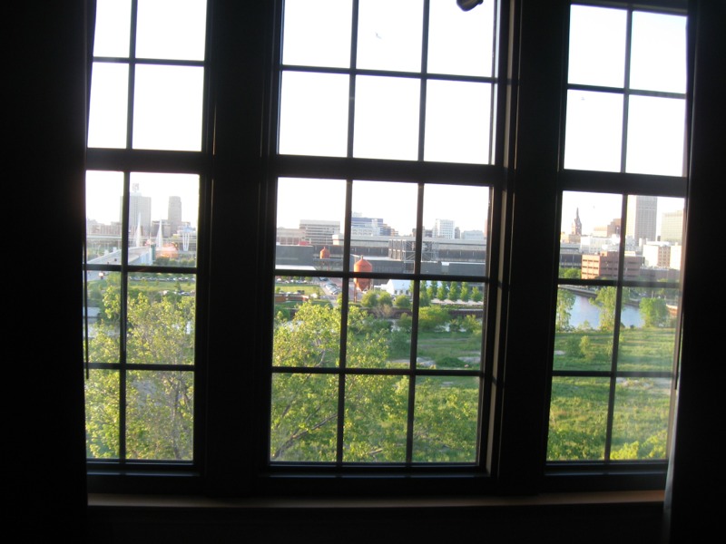 Today I woke up in a building built in 1907 whose structure and style supply the Iron Horse Hotel with its fundamental character. Solid brick walls, wooden support beams measuring 16 inches square and rising 20 feet in the air, hardwood floors that have echoed the hurried footsteps of proletarian factory workers and upscale hotel guests for more than a century, giant fire doors that no longer serve their original function but have been turned into artistic elements in a new setting. The “new” is wonderful, but it’s impossible without the old.