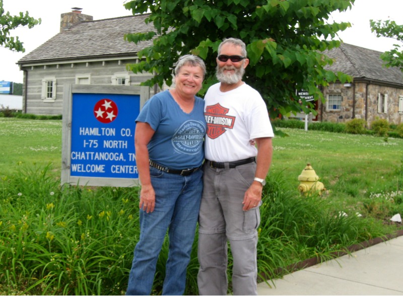 We didn’t ride the twisties too aggressively, but at the Tennessee Welcome Center Marilyn said she had one Georgia-road butt-clenching moment when she scraped her floorboard on a tight left-hander and visions of unpleasantness danced in her head. I wondered why she slowed down, but, still, we maintained a pace that was slightly above the speed limit through the curves and that gave the tread on the sides of the tires a taste of the road.