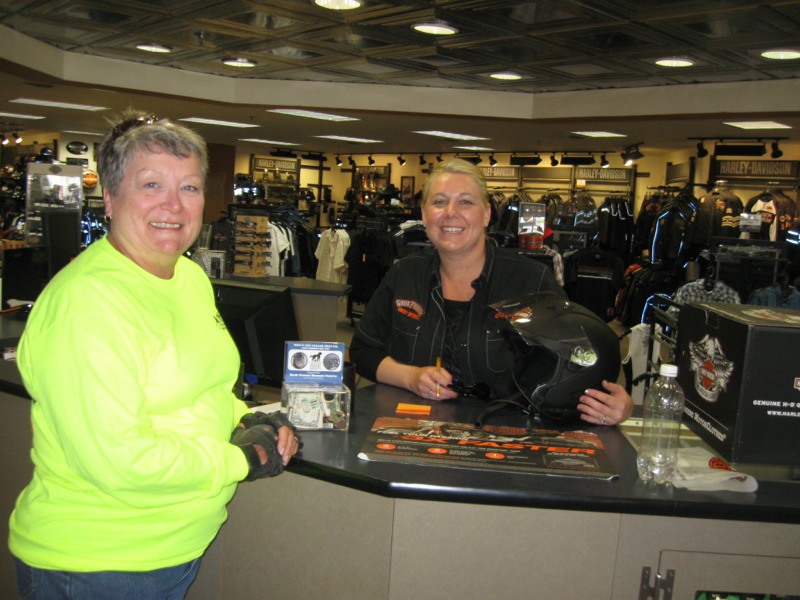 I think I finally solved the communications head set problem. I had ordered parts to be delivered to me in Bloomer, but canceled the order this morning and bought a new helmet and head set at Sauk Prairie Harley-Davidson. My Arai helmet was more than six years old and all advice (at least that given by helmet companies whose job it is to sell more helmets) is to replace helmets every 3-4 years because the protective parts become brittle and thus less effective. I probably should have replaced it before we left, but it was one of those things left undone. Chanel Jadack, the motorclothes manager at Sauk Prairie, helped me select a good fitting helmet and then, as a bonus, installed the Boom Audio Headset. (Chanel, if you’re reading this, the adhesive part of the hook and loop fastener has to be secured to a solid surface, not the cloth covering over the earhole. It was an easy fix this evening. Thanks again for your help.)