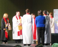 You would have to know my daughter to fully appreciated the appropriateness of the situation, but she celebrated her ordination on crutches from a blown knee requiring reconstructive surgery in a few weeks AND she had just gotten out of the hospital Friday after a bout with colitis that kept her in a hospital bed for four days on a diet that would make a humming bird the winner of The Biggest Loser. She was exhausted and pained in several parts of her body, but keeping her from this appointment with the conference bishop would have been as hard as it was to keep me from my appointment with the Great Alaska Adventure.