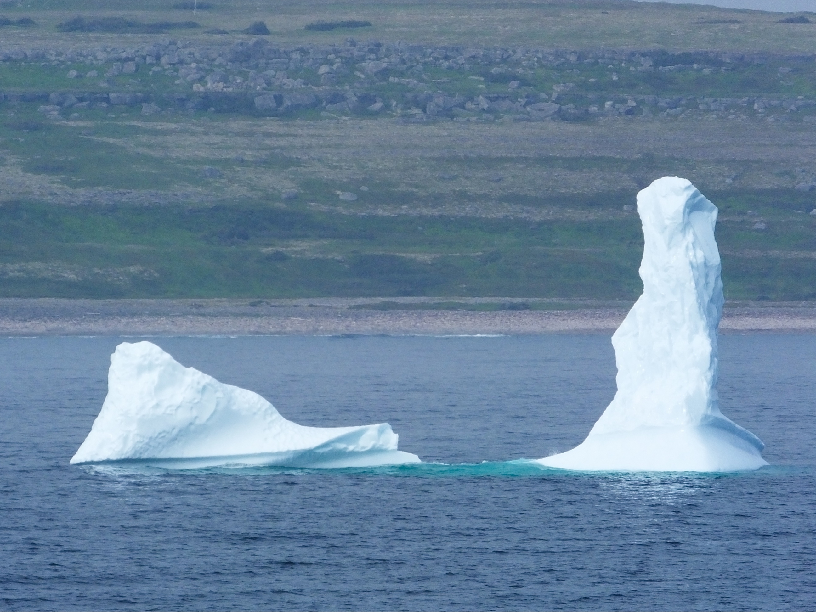 As they melt, the water that runs off them into the ocean is some of the purest water in the world, having been frozen 15,000 years ago when there were far few pollutants in the air. I would like to have chopped off a piece to put in my glass of Jack, but those who know icebergs say you generally shouldn’t get that close to them, unless their grounded near shore. Out at sea, they continue to break apart and flip over, and anyone in the vicinity is likely to get tossed into the frigid Atlantic waters.