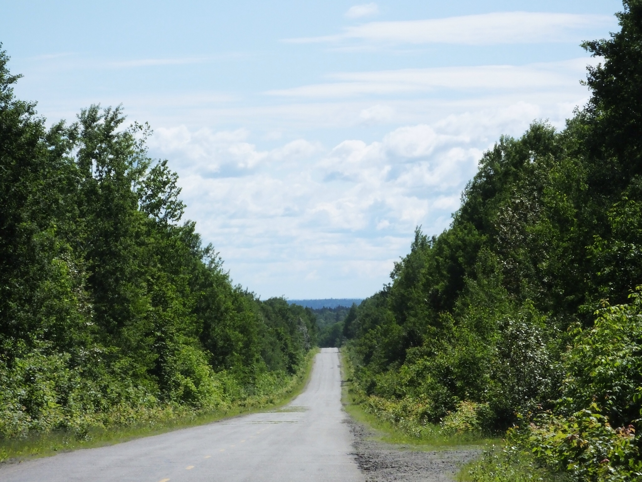 I didn’t ride nearly as many miles today as yesterday, but in some ways today’s ride was more challenging. I left the Interstate-like highway as quickly as I could after leaving Edmundston and headed cross country on a more scenic but much slower route. In fact, Highway 108 in New Brunswick is little more than a paved logging road since there are no businesses, no houses, no nothing except mile after mile of trees and hills. Signs warned drivers ahead of time that road conditions could be problematic, so I expected to go slow and I did. Posted speeds were 70 an 80 kph (42 and 48 mph) but I was usually under those speed limits trying to avoid road breaks and pot holes for about 85 miles. Still, given those challenges, I’m glad I left the four-lane highway and took the rustic route.