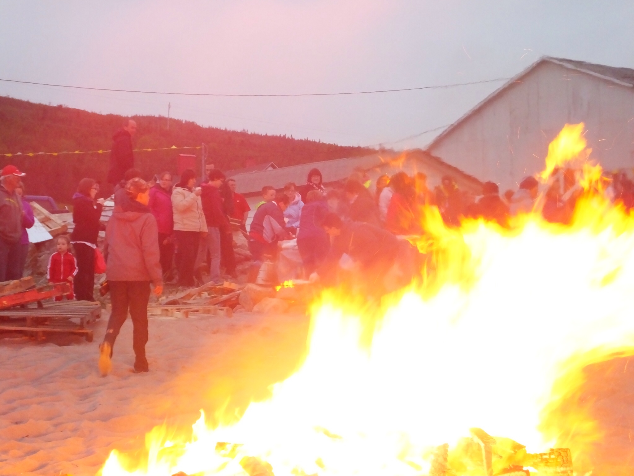 What I can do, though, is relate last night’s events that occurred after I posted the blog (early for a change). After participating in the Canada Day revelries in Red Bay, I thought my Canadian patriotic fervor had run its course. But no. I was wrong, much to my delight. The town of Fronteau had its traditional come-one-come-all evening bonfire and fireworks celebration and it just so happened that the festivities took place just across the road from the historic B&B where I was staying. So I and several other B&B guests strolled over and joined the fun. It was as small-town traditional as you can get.