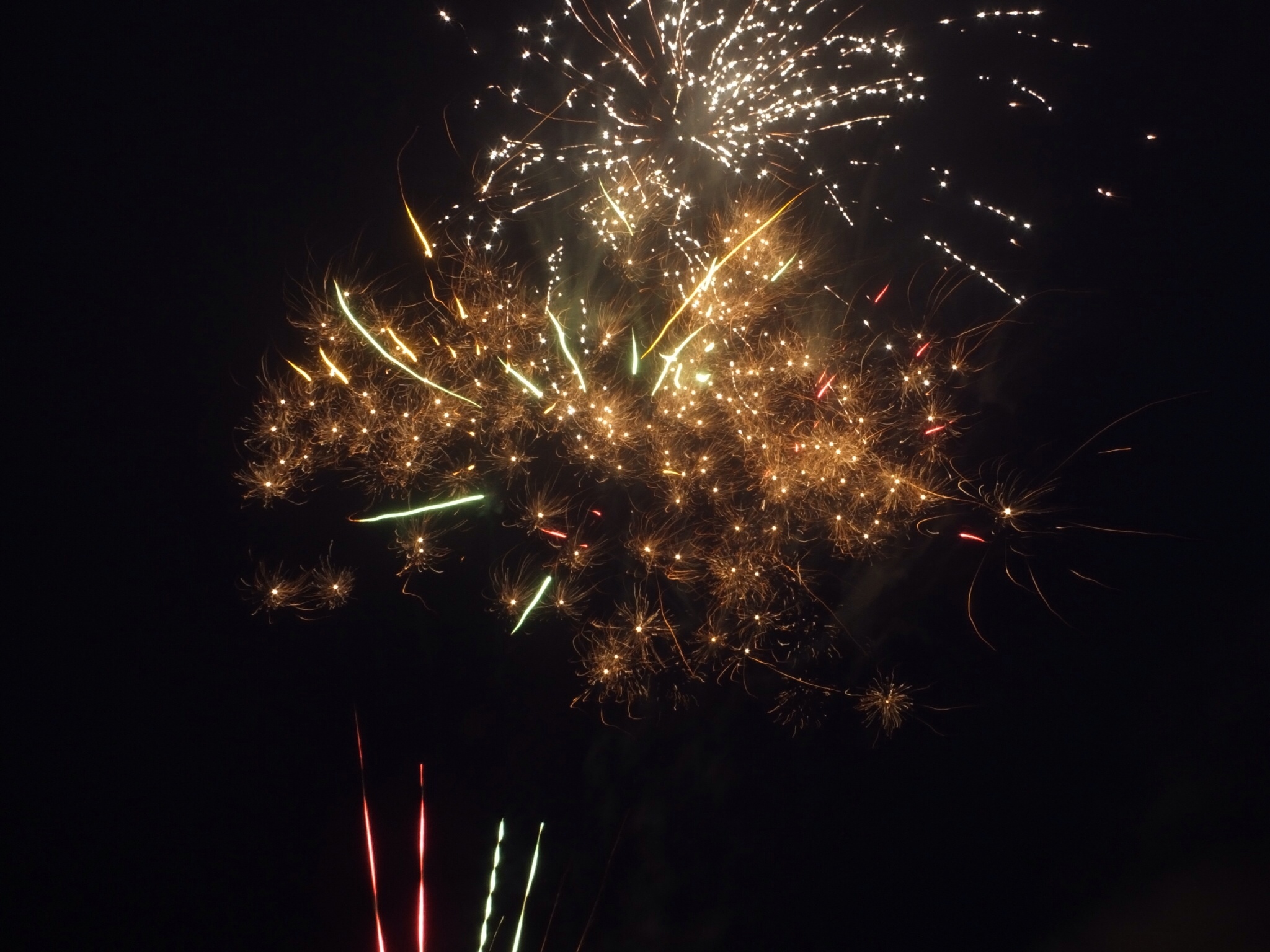 About 11 p.m., when the only light available was from the bonfire and the cooking shed, the pyrotechnics began with a couple of half-hearted Roman candle bursts and concluding 10 minutes later with a crowd-pleasing, multi-rocket, star-bursting, cascading firefalls finale.