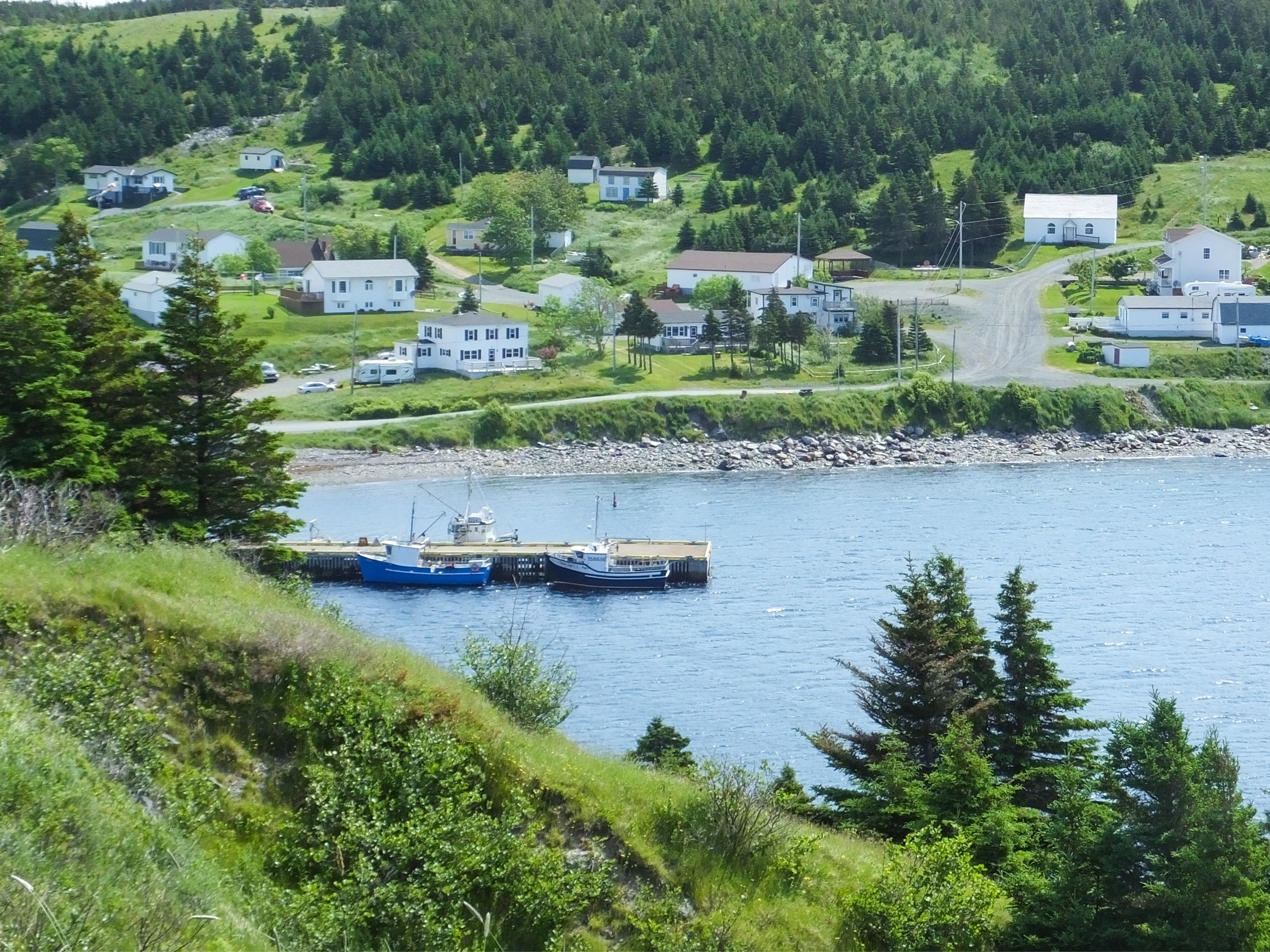 Before I get to today’s business, I have to mention what happened last night. Two ladies staying at the bed and breakfast, Margaret and Anita, grew up in this area and still have friends here. Last night eight of their friends came to visit, bearing guitars and a small accordian. For two hours they sang, told jokes, danced, reminisced and made me and the other two guests feel as welcome as if we had been their classmates years ago. In Newfoundland, apparently, this kind of get together is a common occurance and is known as a “kitchen party.”