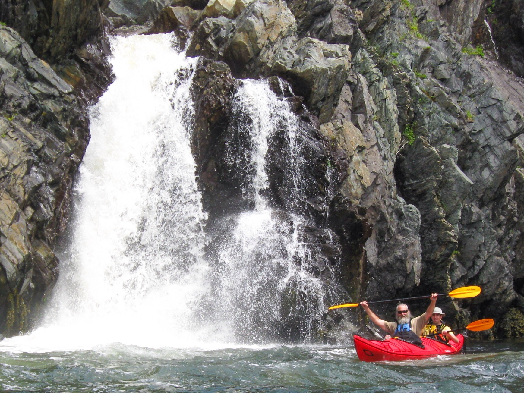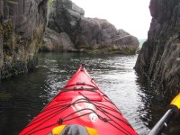 Kayaking around the icebergs in Twillingate was so much fun I decided to try the waters again, hoping to see some whales up close. Unfortunately there weren’t any in the cove where we went. This was a guided tour with seven two-person boats and and two guides who took us to waterfalls, caves, old fishing structures and a little nature lesson thrown in as they explained various seaweeds, urchins, starfish and capelin (the whales’ main dinner course).