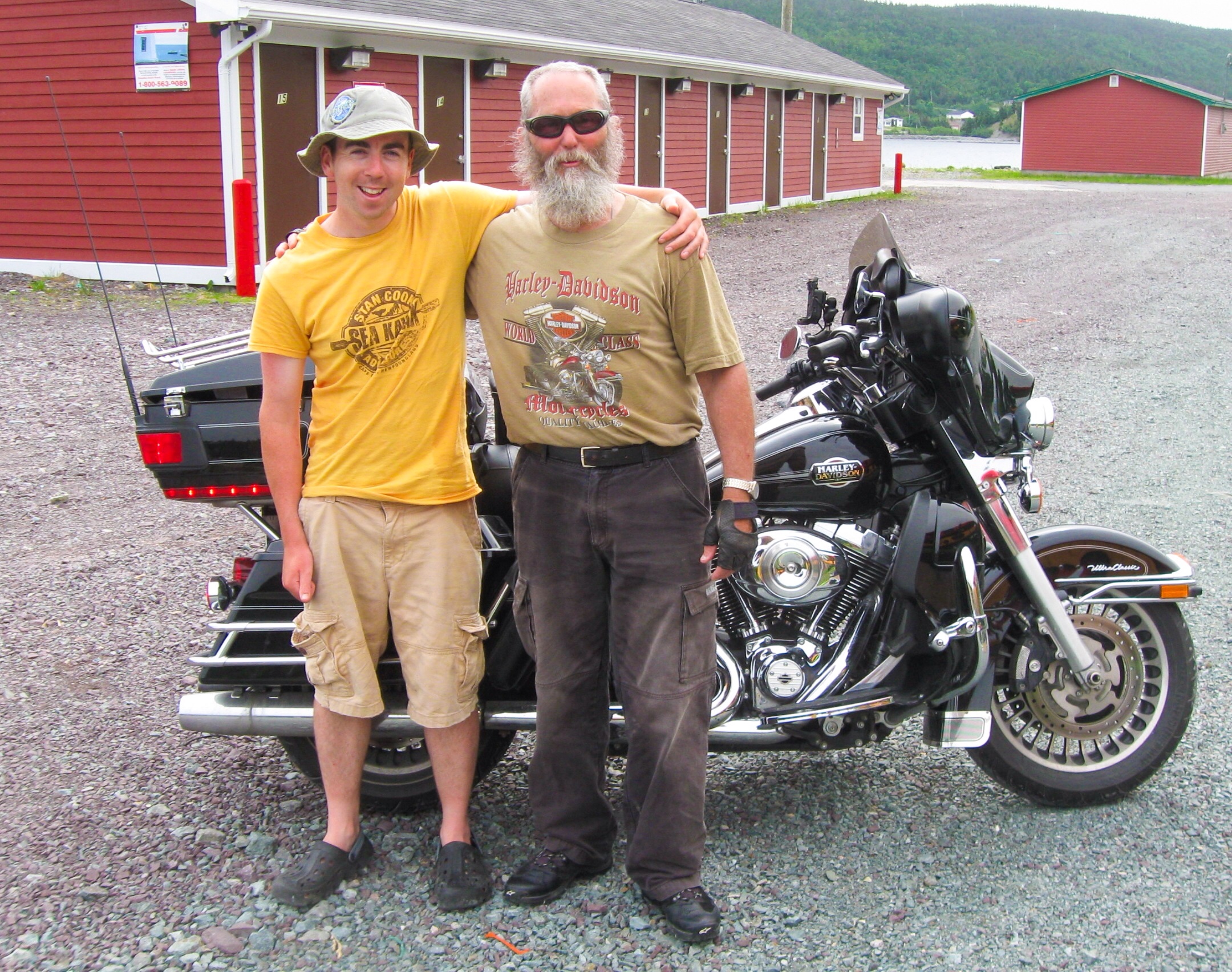 Daniel had a strong Irish brogue, talking about his brudder and his fadder, and his efforts to hone his sit down (as opposed to stand up) comedy gig added to the afternoon’s pleasures. He was a nice kid, who thought riding a Harley-Davidson around the United States and Canada was a pretty good idea. After the paddling was over I showed him the bike; he thought the Ultra’s saddle was more comfortable than the kayak’s seat.