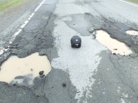 I’ve talked about the condition of the roads here–some good, some (in a decided understatement) not-so-good. Sometimes, but not always, a road sign announces there may be potholes ahead. Believe them when they warn you. I’ve fished in ponds that weren’t as deep as some of the potholes I weaved around, taking full advantage of the parking lot cone weave practice I’ve had. Hit some of these at 60 mph and you’re going to have some serious problems and almost certain a bent wheel and a blown tire.
