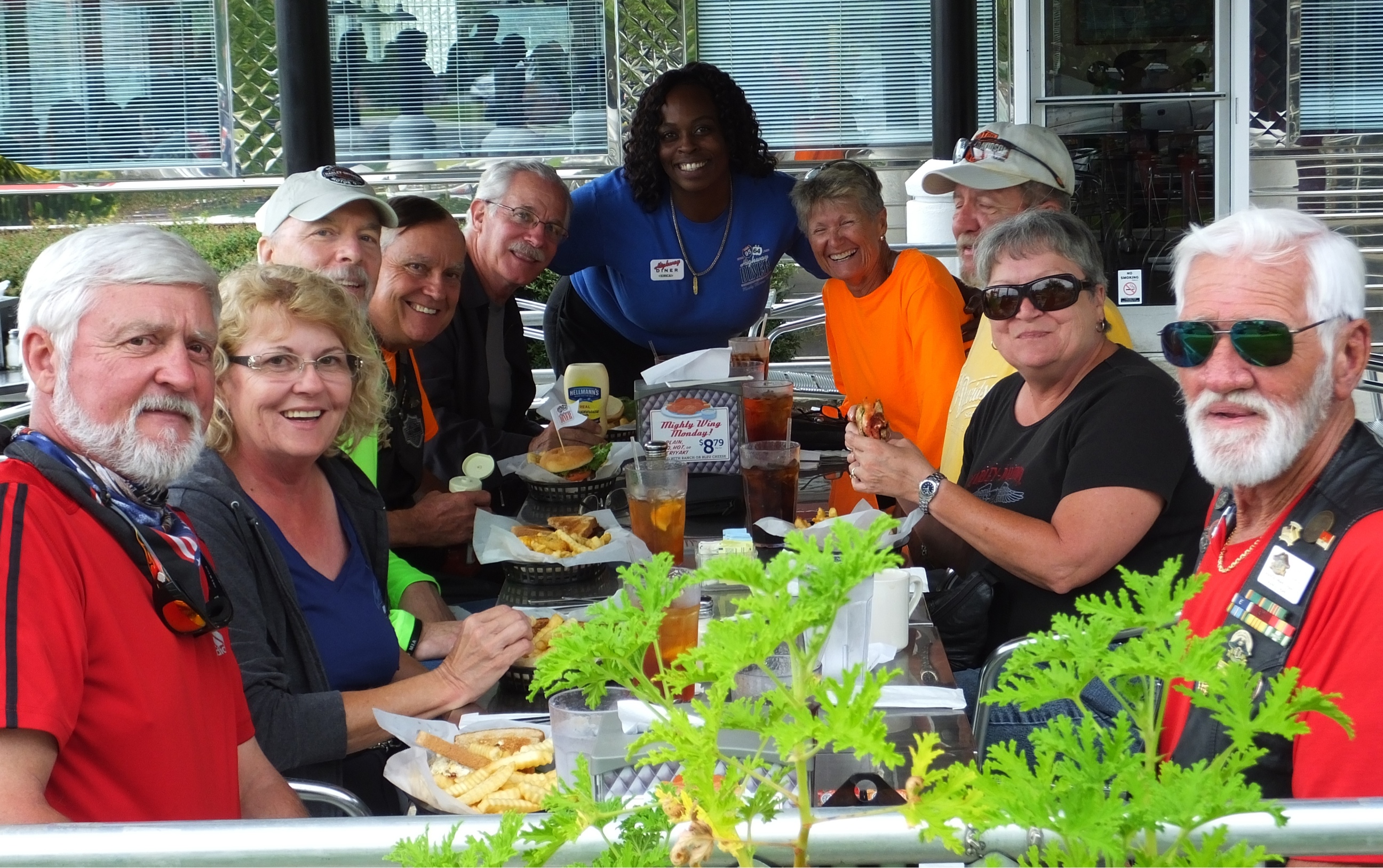 Today’s ride, which began with Willie Nelson crooning “On the Road Again,” was uneventful, and rain that had been forecast for today several days ago never materialized. It would have been hard to find better weather for riding than we had today. But it was just 360 miles down the asphalt ribbon, swerving around the occasional South Carolina road breaks and potholes and keeping an eye on 18 wheelers and motorists in a hurry. Lunch, a couple of gas stops, and a final Dairy Queen break to extend our time together, made for an unremarkable ride home.