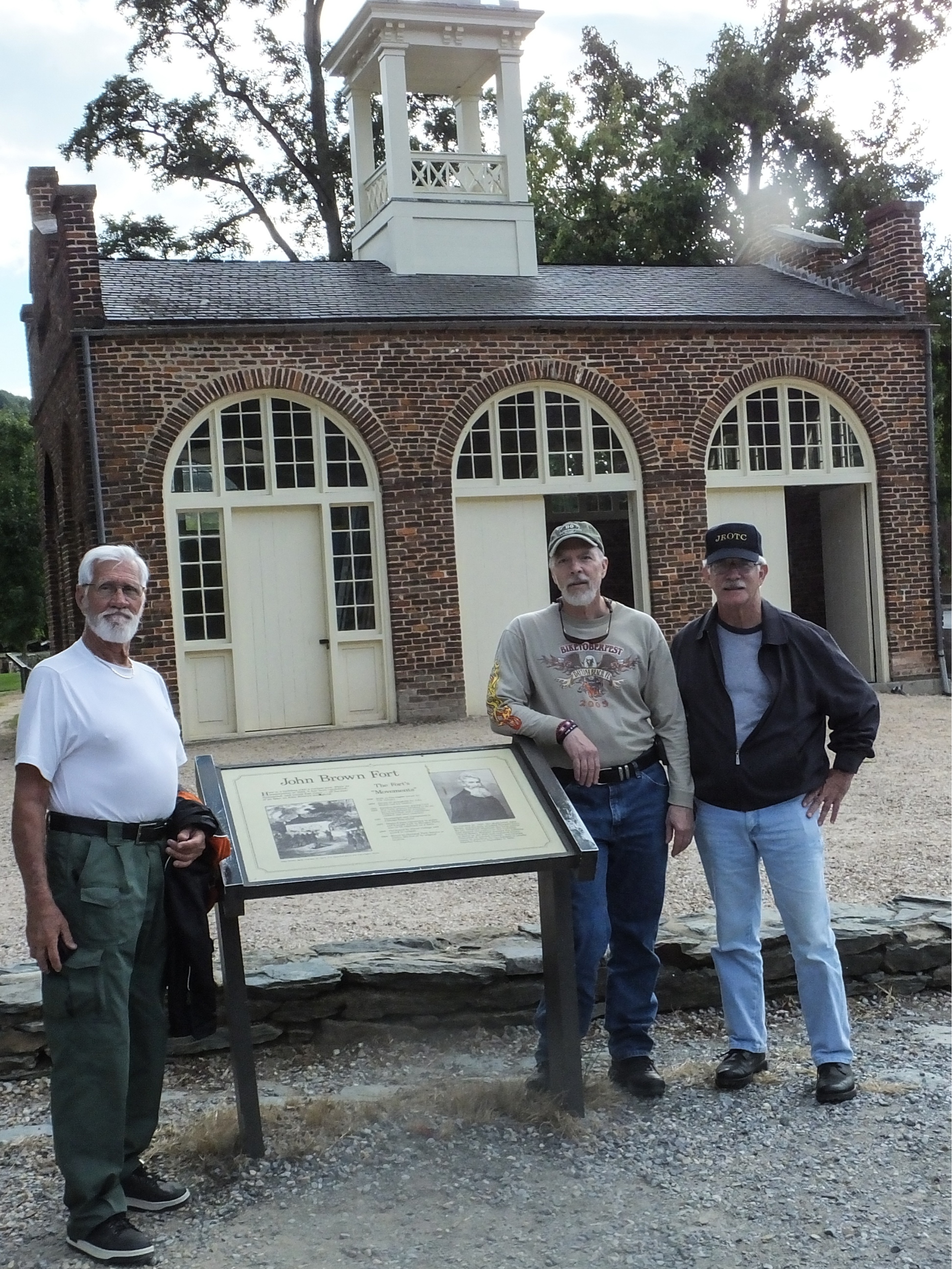 Ski, Mark and Lee stand in front of the building where John Brown was captured during a failed uprising in 1859.