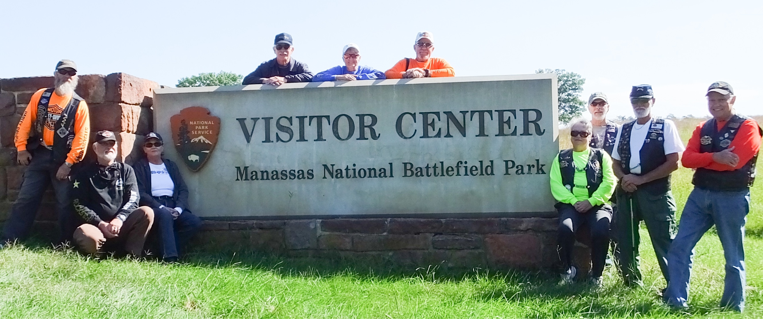 The first five miles this morning were frustratingly slow as we contended with rush hour Interstate traffic for 2 1/2 miles before leaving the eight-lane parking lot and heading for a surface road. Which was being resurfaced. And for the next 2 1/2 miles we tried to stay together and navigate a sea of orange road buoys that lined the construction zone. We took about 30 minutes to go five miles. But finally traffic cleared, construction ended and we were gliding through open countryside on a gently curving road cruising along at 55 mph on a crisp northern Virginia September morn. Things were looking good and several riders commented after we pulled into the Manassas Battlefield Visitor Center parking lot how much they enjoyed the last hour of our 1 1/2 hour trip to Manassas.