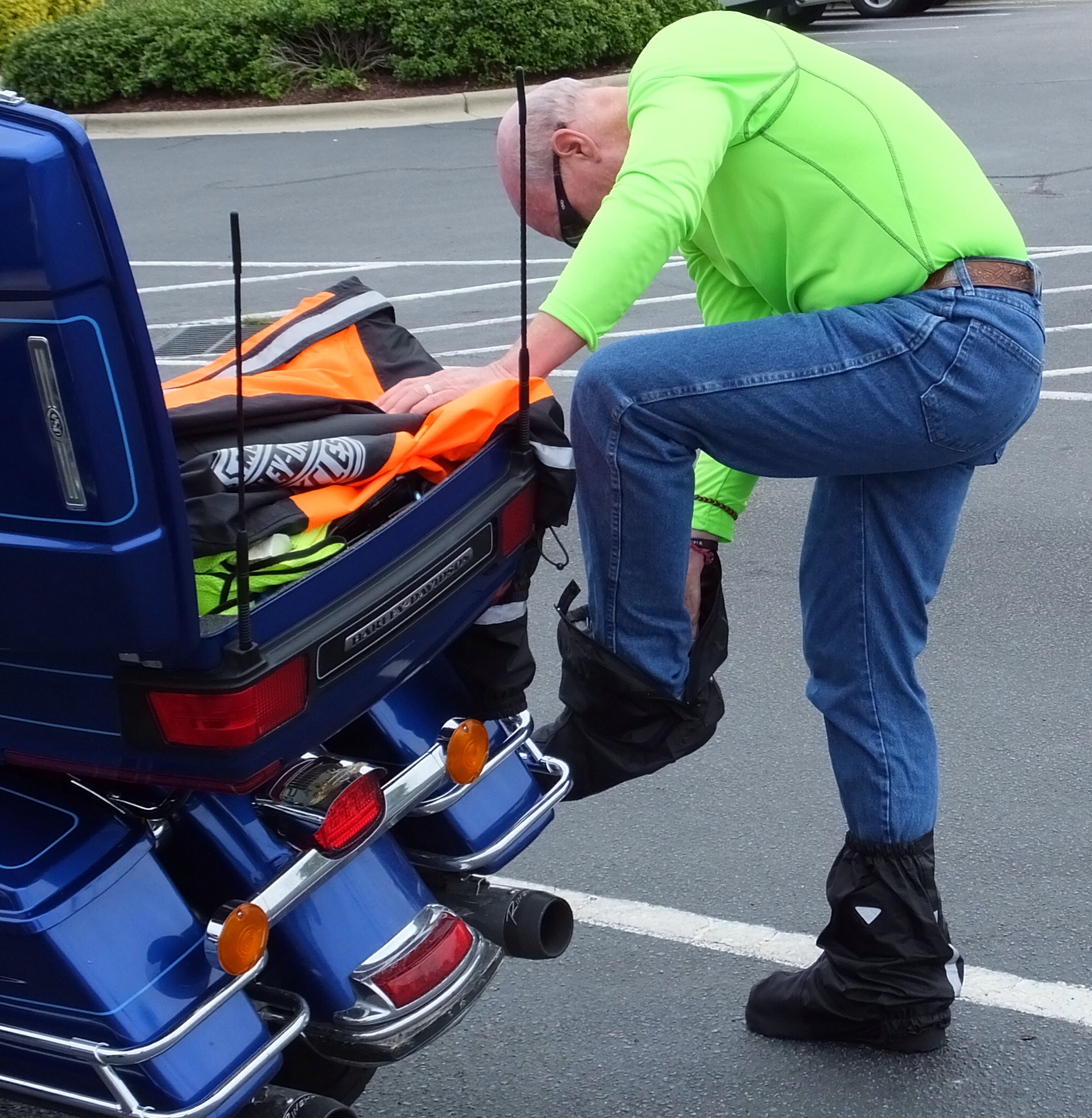 But, finally, we got back on the road and headed north to Fredericksburg. Except the rain, which we thought had ended, reared it’s soggy head again and we made an early gas stop south of Petersburg to suit up again under the protection of a protective gas station awning. Of course, by the time we finished suiting up the rain had just about quit and all we ended up with was about 10 miles of wet road. But the roads dried out, and we had smooth sailing to the motel. Or so we thought.