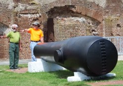 We wandered around the site on a day where the temperature was in the 90s and the humidity was nearly the same, looking at gun emplacements, cannons and the thick, battered walls that tried to protected both Union and Confederate troops from 1861 to 1865. We also spent time in the small air-conditioned museum that did a good job presenting interpretive artifacts and telling the history of the fort before, during and after the Civil War.