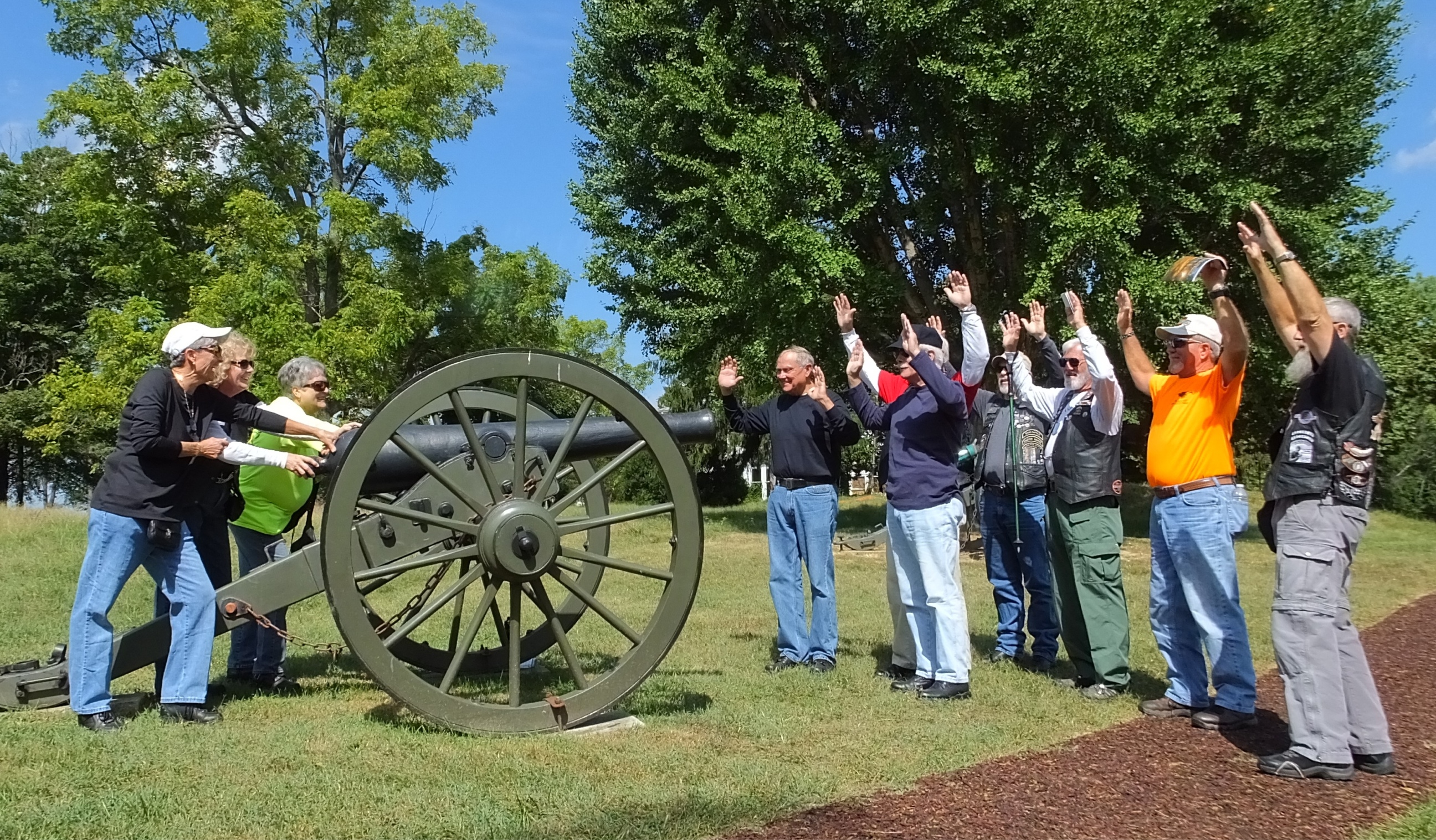 While I think everyone would like to have extended the trip by many miles and more historic sites, they were also ready to decompress in the quiet of their own homes for a few hours or a few days. Most days on this trip started with alarm clock reveille before 6 a.m. and ended each day well after 10 p.m. Between reveille and lights out, each day was a full day of riding or walking or both. Don’t get me wrong. No one complained. No one asked for fewer miles or shorter days or fewer visits. And each morning–without fail–when we met for our pre-ride safety briefing and historical synopsis of the day’s planned activities, all campaigners were ready before the appointed time.