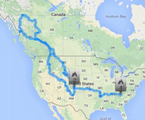 This map shows the general route I’ll follow.  I’ll head west from the Appalachians, cross Tennessee’s Cumberland Plateau, and wind through the picturesque mountains of northern Arkansas before pausing briefly for a family stop in Wichita.  Then I’ll be on the road again to Colorado where I’ll begin the heart of this year’s adventure:  a loop around and through the Rocky Mountains.  All of them.  I’ll meander south for a couple days to Santa Fe, New Mexico, and the southern terminus of the Rockies (according to geologists who should know about these things). Then I’ll change my compass heading to north by northwest and head back into Colorado, continuing through the corners of Utah and Wyoming before riding through the rugged Bitterroot Range in Idaho and up to the Canadian border.  There, I’ll begin an 11-day sojourn through the Northern Rockies in Alberta and British Columbia (with a quick jaunt into the tail of Alaska) before completing the northward trek in Yukon Territory where the Rocky Mountains taper to their northern end. Then I’ll point my headlight south again, hugging the eastern slopes of the Rockies through Canada, Montana, Wyoming and Colorado, ending, I hope, at the top of Pike’s Peak before heading east and home.