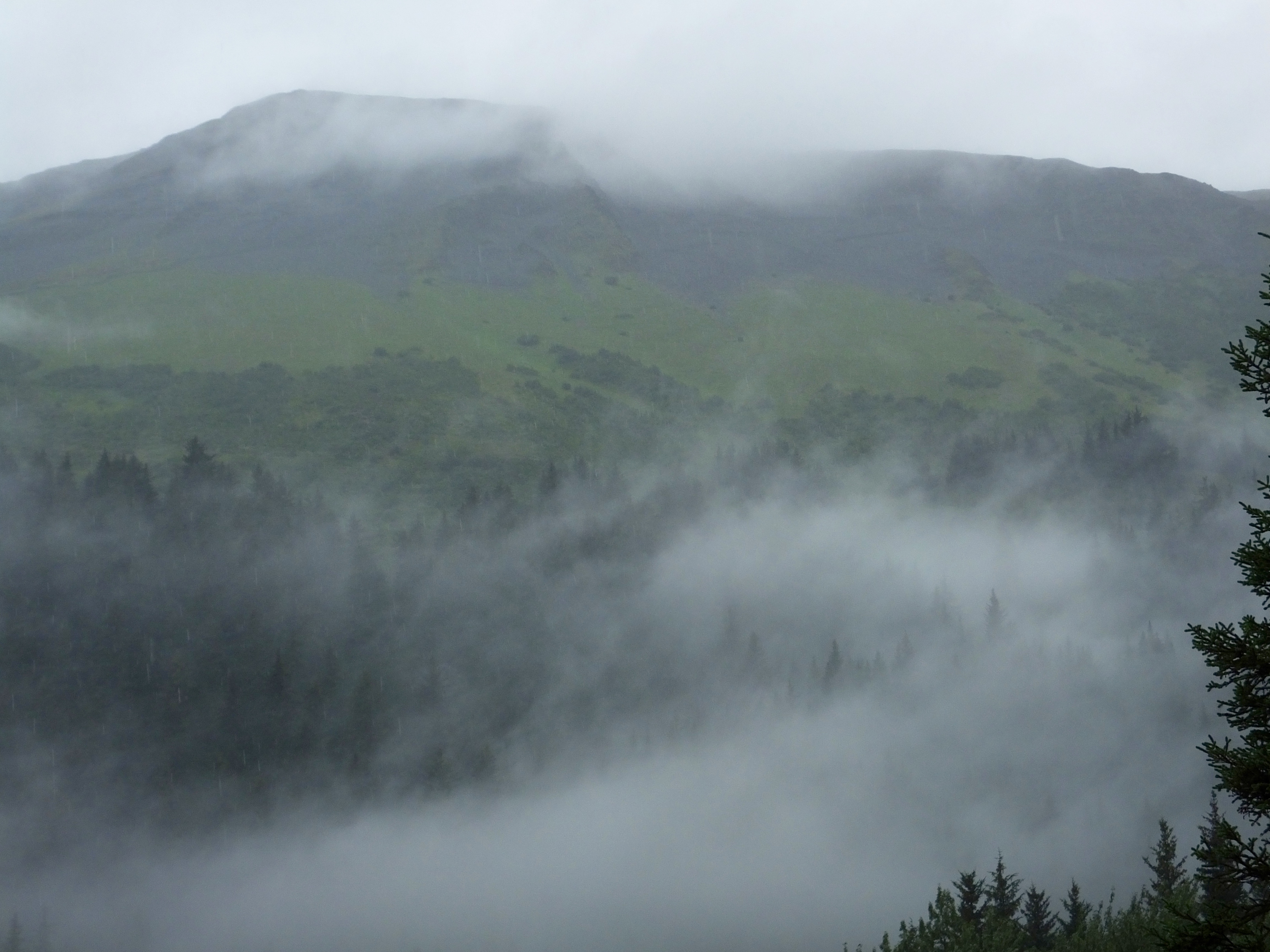 Add a view of the moored boats in the harbor in Resurrection Bay with mountains across the water sporadically emerging through the moving mist, and it was a good end to a wet day.