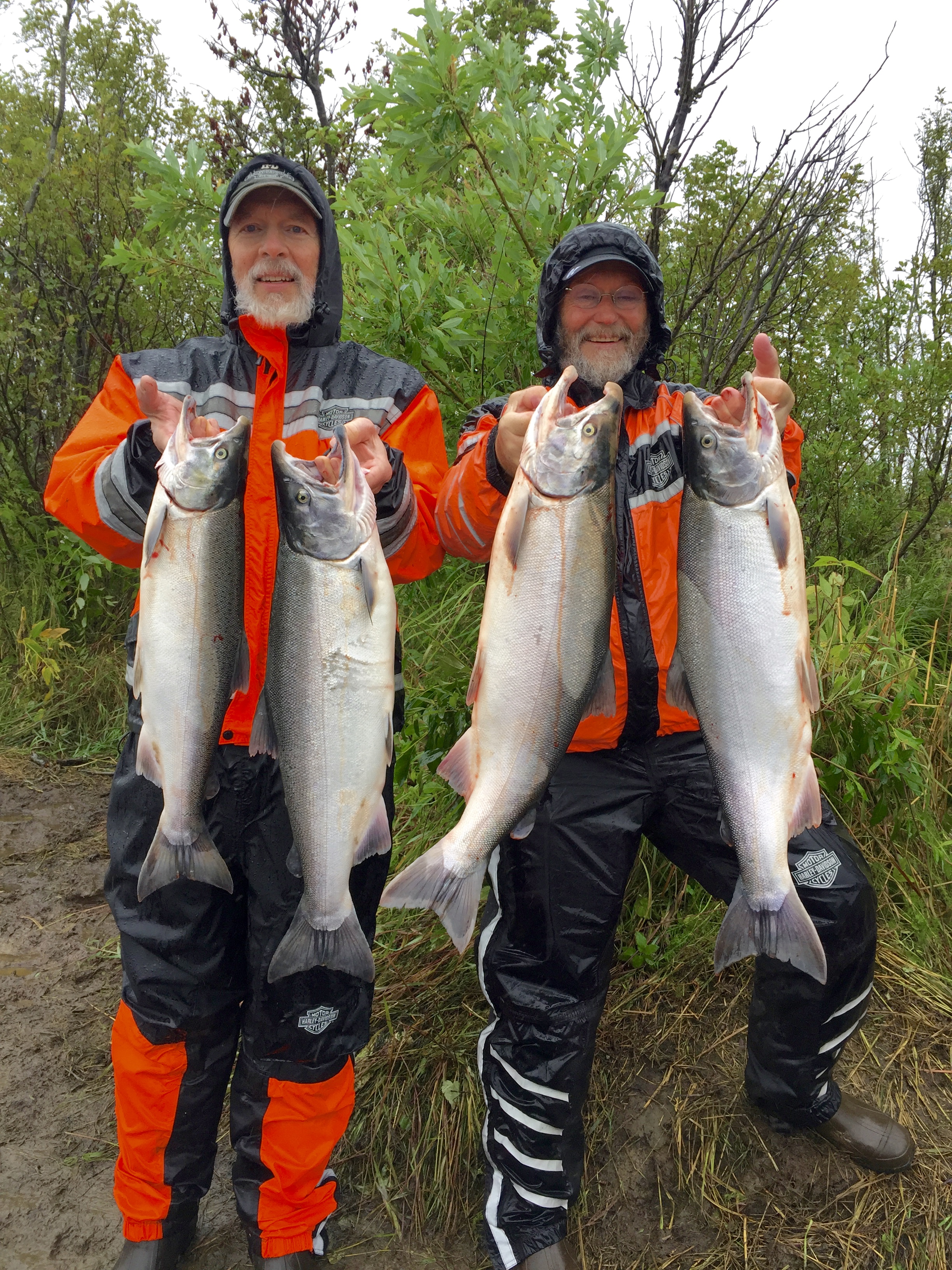 As Dennis not the rain was unrelenting but once we were able to hook that first silver you tried to put the rain to the back of your mind! They are quite the fighter so were a challenge to land. With the light weight gear and drag set low you had to reel and reel some more to land one of these beauties! Our guide was phenomenal and helped keep our spirits up through the rain and chill, always a positive attitude working diligently to make sure we went home with our limit or as close as possible. A very satisfactory day and looking forward to our challenges on Tuesday with hopefully much better weather!