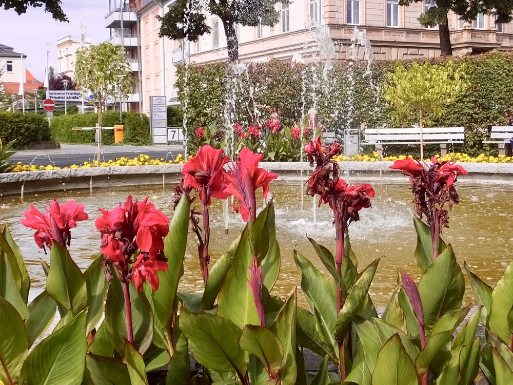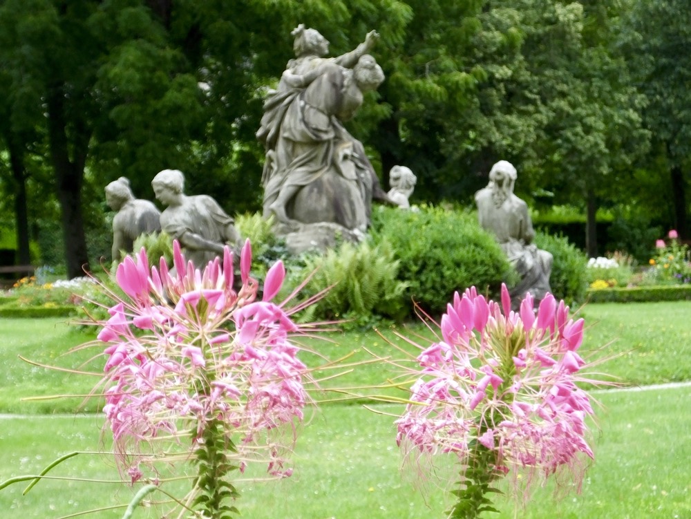 Our tour guide, Alex(andra), walked us on a one-hour tour focused mostly on old Bamburg. The city had it’s start sometime before the 12th century and was intentionally founded with seven churches on seven hills to mimic Rome, the heart of the Holy Roman Empire. Because it was a Sunday and the main cathedral (circa 1020) was in use, we couldn’t go inside as a group, but from the outside we knew it was an impressive structure. We passed by the Old City Hall, decorated with colorful murals and intentionally build in the middle of a river so the town wouldn’t have to pay taxes to the local bishop. The various cobblestone-covered plazas were enormous and even with all the crowds in town, many still seemed to be mostly empty. Behind one of the state buildings which held the state library we enjoyed a rose garden filled with flowers and statues and providing a tremendous view of the city spread out below.