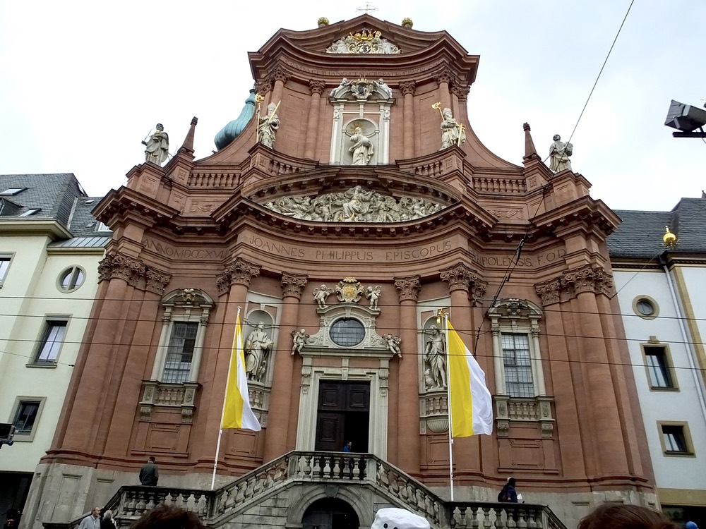 Following our time in the Residence, we headed out for a one hour tour of the center of Würzburg and several hours of free time walking through the city and it’s busy market place. Our guide correctly pointed out on several occasions that churches dominate the skyline of the city and still play an important role in the lives of the people who live there. I focused my camera on a few of the more prominent and striking examples.