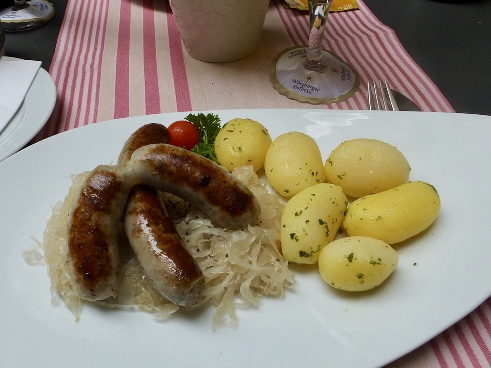 We could have gone back to the ship early but decided to spend a large part of the afternoon in the city exploring and experiencing the local cuisine. Every town in Germany probably has a Ratskeller restaurant/bar, which roughly translated means the place where government officials meet outside of city hall to drink. We chose the Ratskeller because it was nearby and because it promised bratwurst, sauerkraut, rye bread and beer. Find a table outside and a waitress who speaks English and you’re in for a Franconian treat. As usual, I ate more than I should have, but it was delicious and the beer was cold.