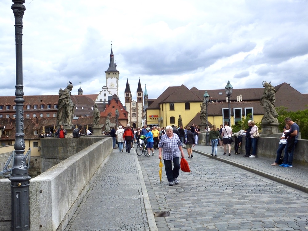 A large festival honoring the patron saint of Würzburg (St. Killian, also the patron saint of Ireland) was underway in the city and we competed with pilgrims for sidewalk space. Large churches also competed with one another for space and every block seemed to contain several churches or cathedrals, any one of which would have made most cities proud.