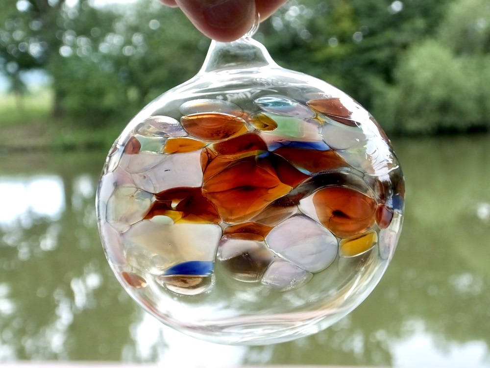 Karl Ittig, a showman as well as a world-class glass blower/artist, started me off with a shot of Jaegermiester, which he said was essential for good glass blowing. The Jaeger went down smooth. After sharing shots, we moved on to the main course–glass blowing. Karl heated the special, hard Pyrex glass tube and gave it to me to blow into, with the unnecessary warning not to inhale. Working together, Karl and I produced a beautiful glass ball that he gave me when the demonstration ended. It will be one of the best souvenirs of this trip.
