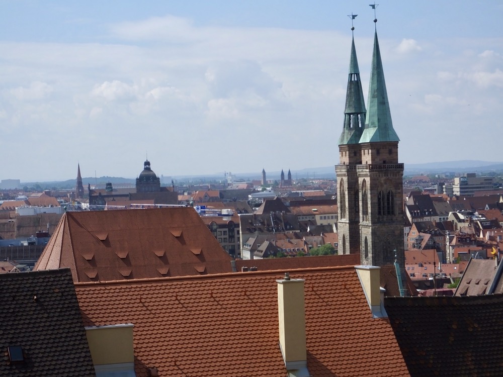 View from the castle of a rebuilt Nürnberg. Most buildings in this picture would have been completely or partially destroyed by April 1945.
