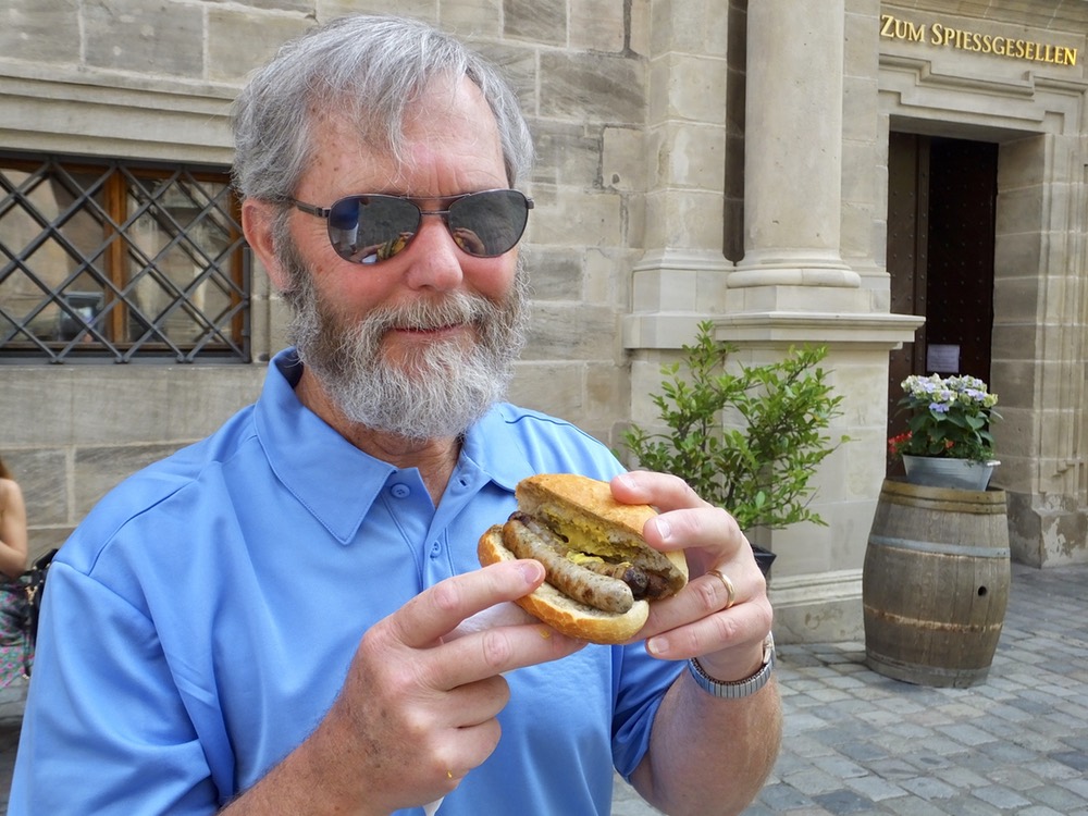 Every region of Germany has the best sausage and the best beer in the world. Just ask the fiercely proud residents in any region. Nürnberg is known for its small pork sausages seasoned liberally with marjoram. In most places, one or two sausages or brats would be sufficient for a restaurant dinner, but in Nürnberg you need to order at least six, eight or ten to go with your sauerkraut or warm potato salad. Or, you can do as I did and go to the takeout window in the restaurant and order “Three on a Bun,” cover it liberally with mustard or horseradish and enjoy it as you walk though the narrow streets. The other half of the Nürnberg culinary experience has to be the craft brewed Rotbier or red beer and the best place to get it is the Hausbrauerei Altstadthof (Old City Brew House) where they’ve been making it the same way for nearly 300 years. Both the brats and the beer convinced me that my German roots are real. I think I could live here on those two things alone. My guide, Andreas, informed me that “A man without a beer belly is not yet a man.” I’m not sure that’s the direction I want to go, though.