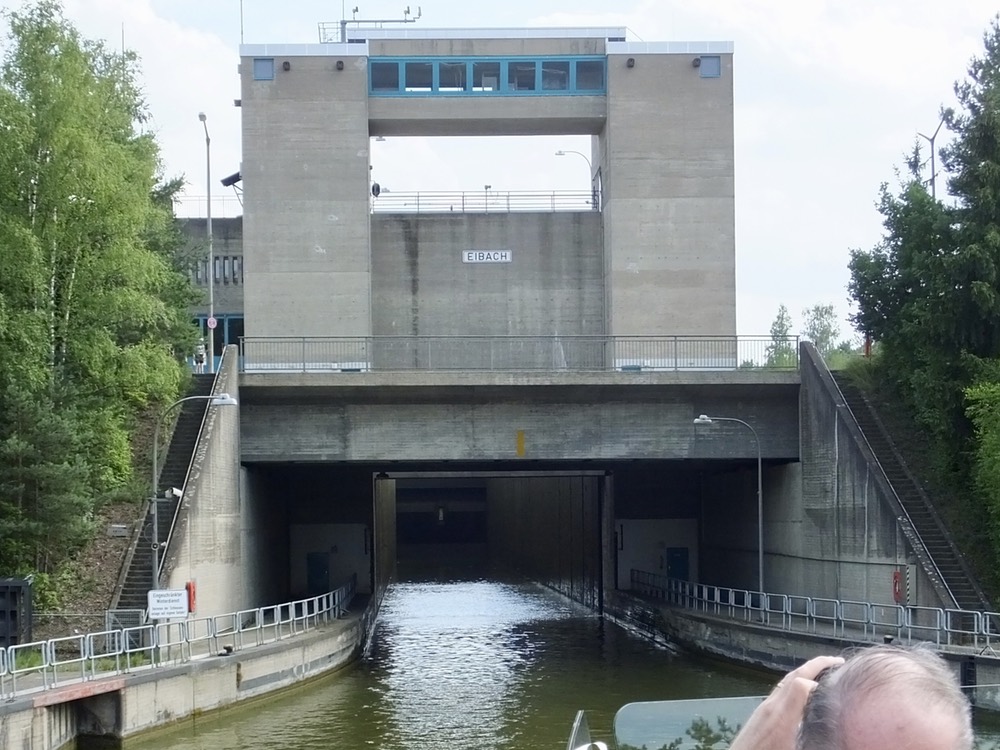 Today we left the Main River in Nürnberg and headed south through a 150-mile long canal that will take us to the Danube and into Austria. The canal journey will carry us through more than two dozen locks, two of which are 80′ high. As I was writing this we sailed along an aquaduct that flows above a highway and Marilyn got to see the four-lane road below our river highway. No doubt, it’s some shock to drivers of cars below to see a 2,000 ton cruise ship above their heads.