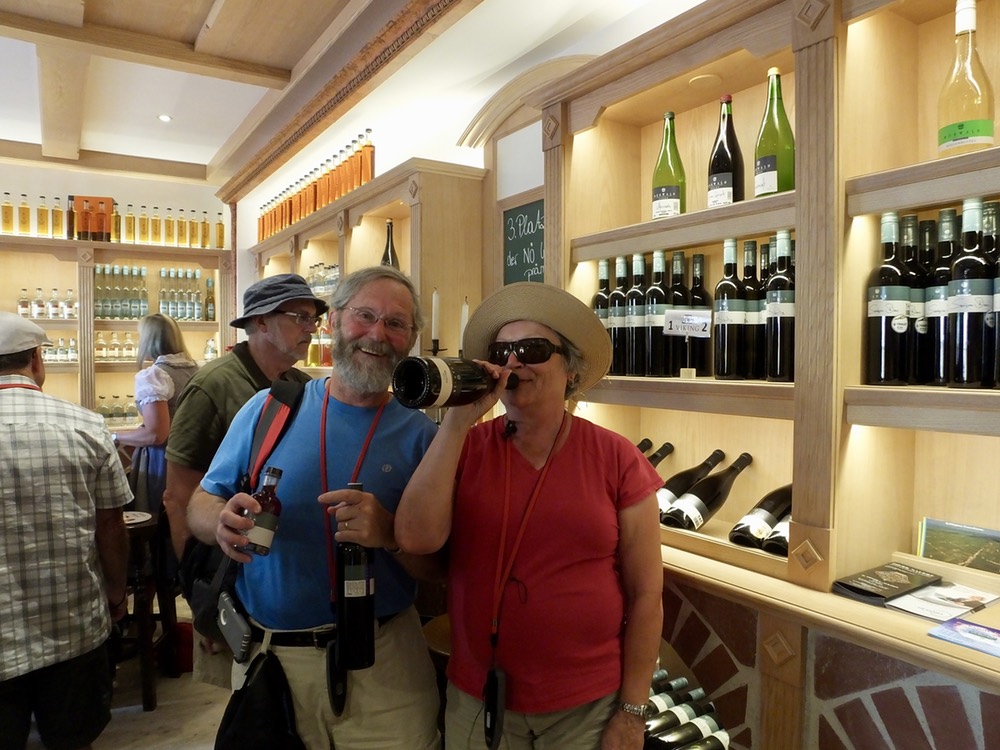 At Krems we debarked and traveled a short distance to the winery chosen to supply much of the wine consumed aboard the Viking Cruise Line’s 50 long ships. We met Erhart Mörwald, the owner of the winery and our special guide for the afternoon. This energetic Austrian took us through the winery, showing us the pressing process, the fermenting process, the bottling process and, most importantly, the tasting process. We sampled six of his award winning wines, then a shot of apricot schnapps. Oh, and then a glass of cherry cordial. I don’t know whether it was the delightful wine or the significant buzz, but we left with three additional bottles and an appreciation for Austrian wine.