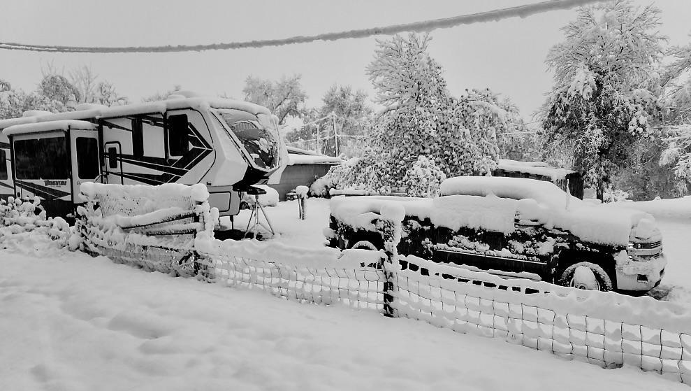 Steve’s plans to join me in Maggie Valley for tomorrow’s departure were nearly derailed by a late spring storm that dumped ten inches of heavy snow on his RV home base near Colorado Springs last Friday. Fortunately, the snow melted nearly as fast as it came down, and by Sunday he headed east to North Carolina despite temperatures in the upper 30s.