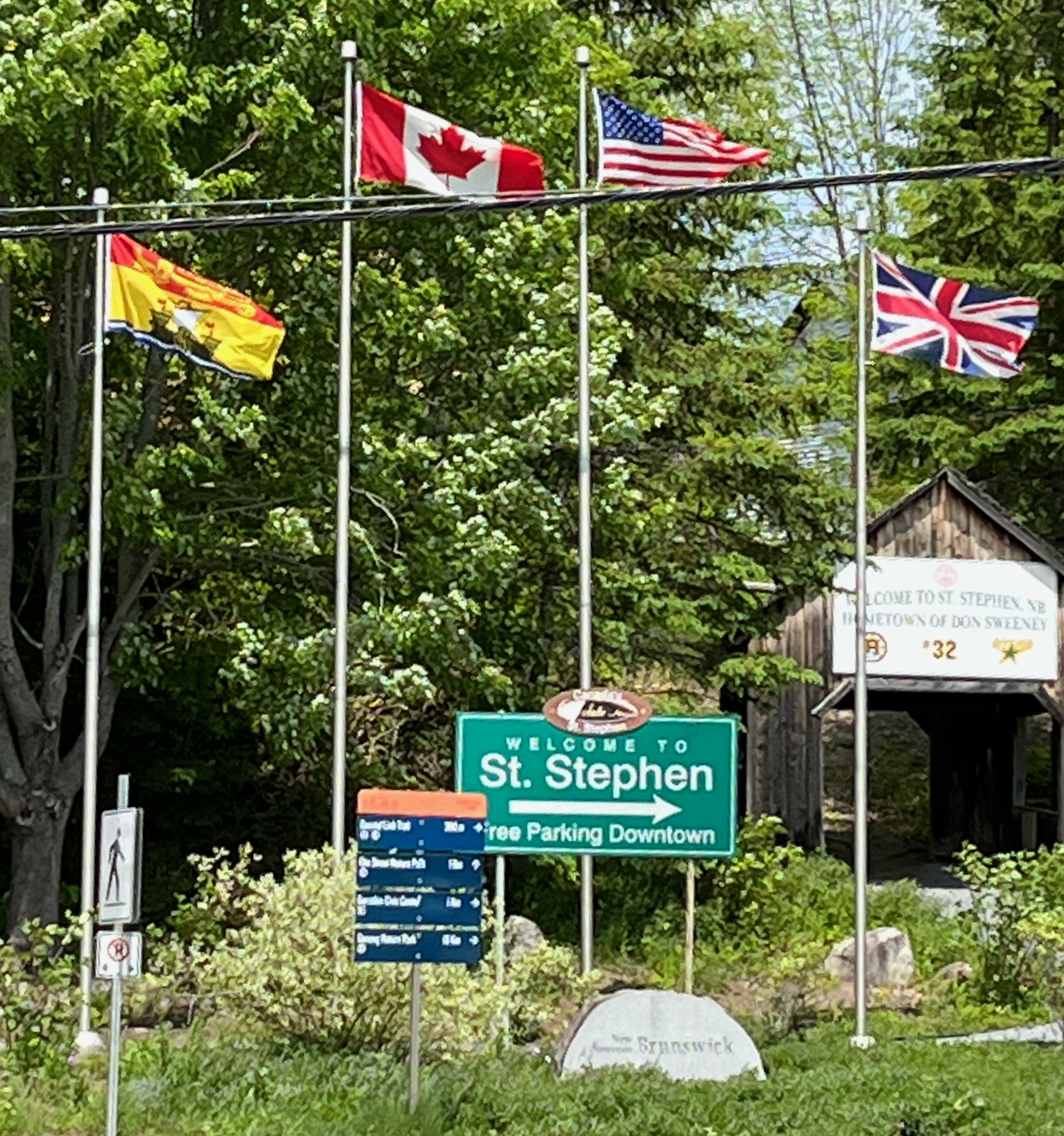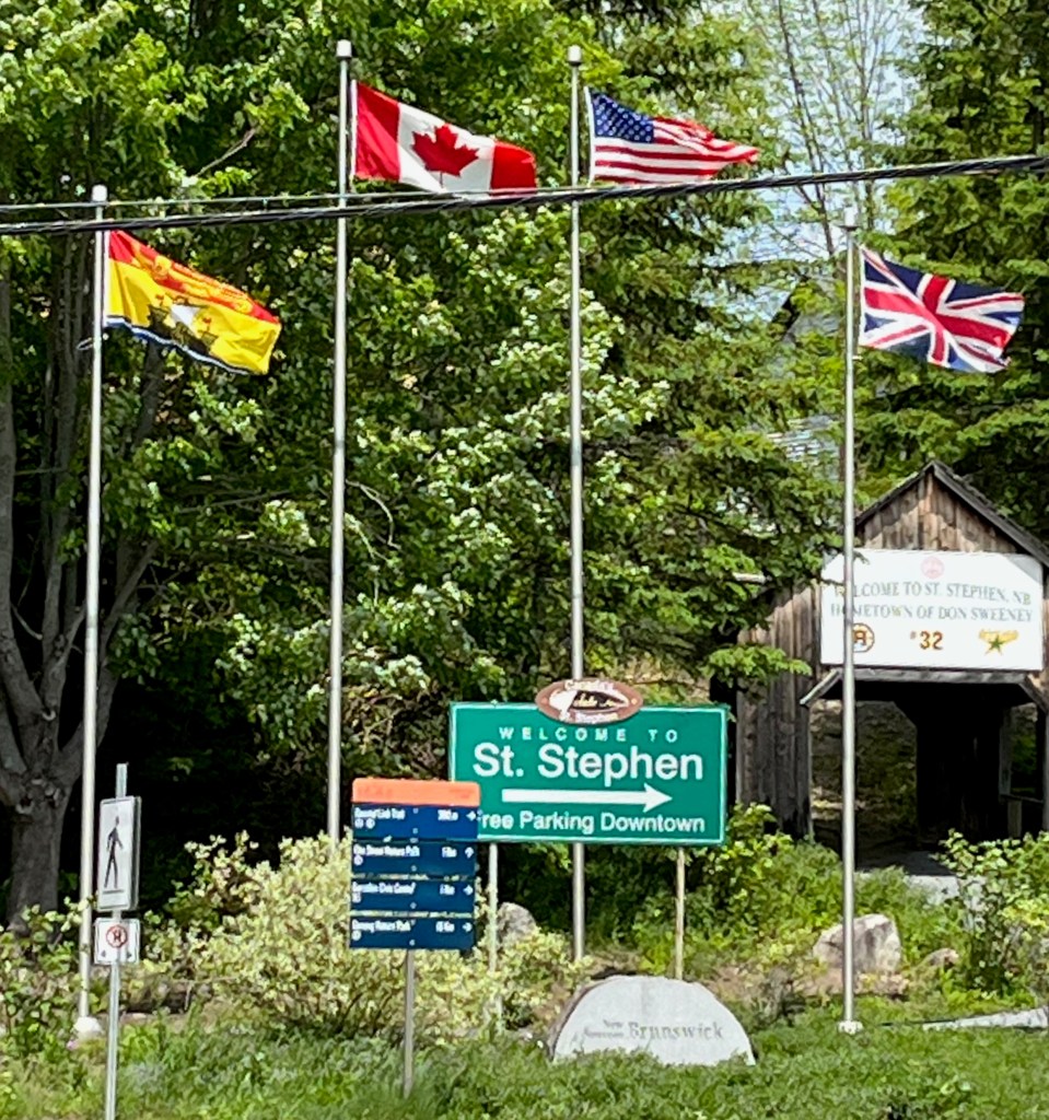 After riding about 1,400 miles north out of Maggie Valley, today we crossed into Canada at St. Stephens, New Brunswick from northern Maine. The entry process was easier than I expected, in part because we had completed the online forms known as ArriveCan related to Covid and had submitted our passport information and copies of our Covid vaccination cards through the app. Our first stop after going through the border check was to a bank to convert American dollars into Canadian ones at a rate of $1 USD to 1.225 CAD. That exchange rate helps make Canada’s high prices for gas and lodging a little more palatable.