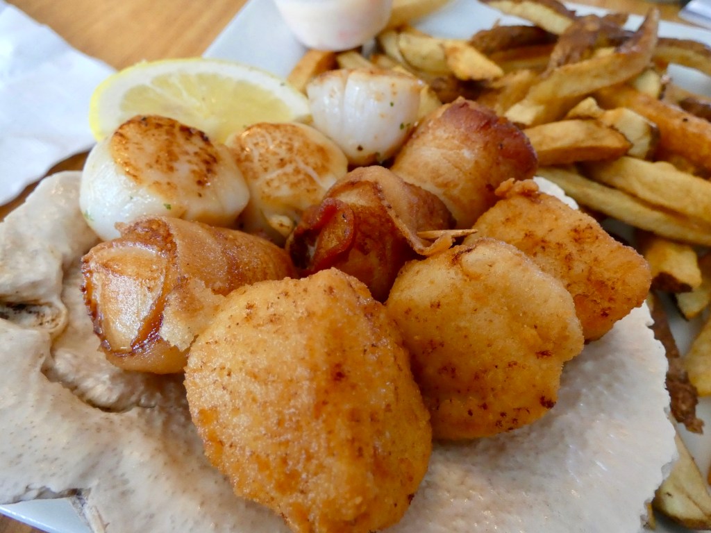 The Bay of Fundy, by the way, every day witnesses the biggest tides in the world. Every six hours the water rises or falls 50 feet, creating currents so strong it forces rivers to run backwards and producing a vortex so powerful the result is a giant whirlpool. The biggest action takes place in the northernmost bays and inlets, but the tide affects every shore and harbor on the Bay of Fundy. All that tidal action also produces what I went to Digby for: The world’s biggest scallops.