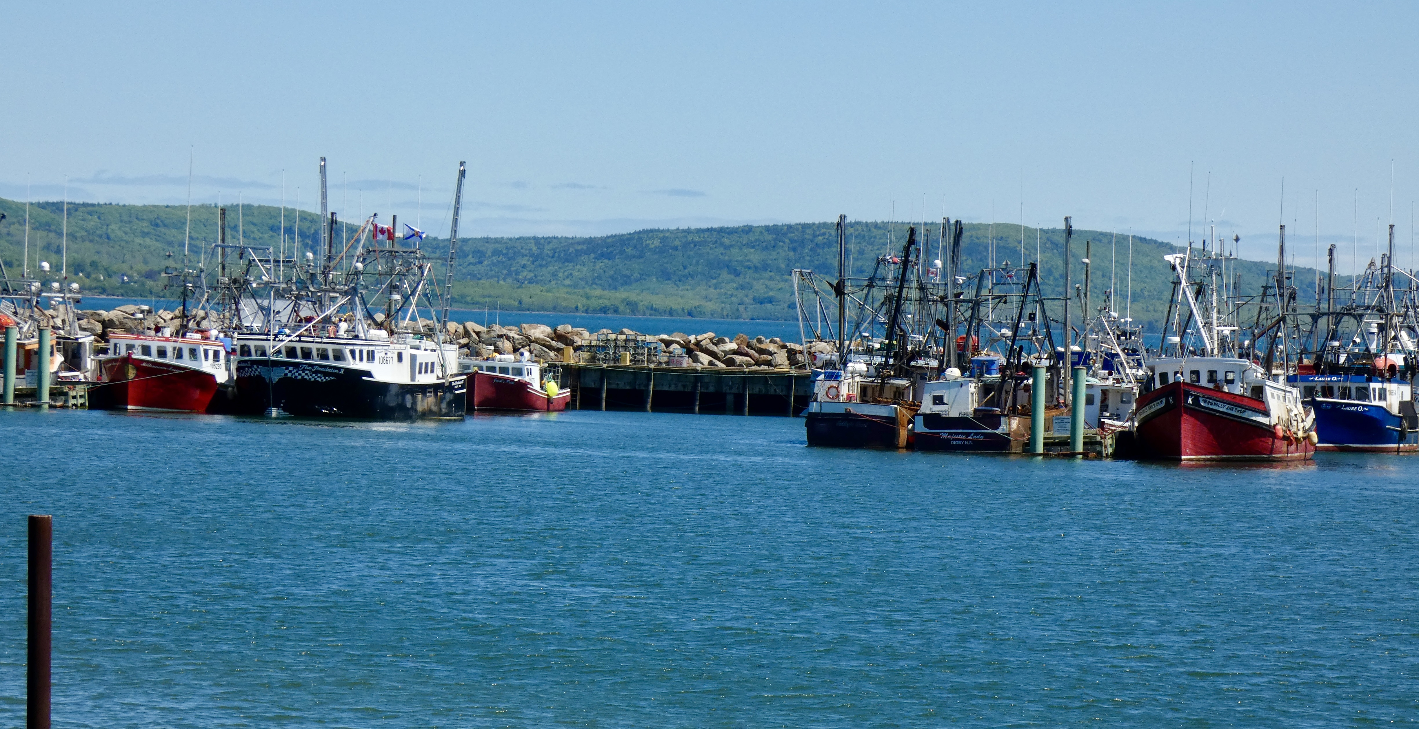 We found the small but highly-rated Crow’s Nest restaurant on the main drag along Digby harbor, looked briefly at a menu, and with the help of our delightful server Wendy, ordered the amazing scallops we had taken a $100 ferry ride to enjoy. If you’re ever in Digby, I highly recommend this gem on the waterfront. It’s a piece of Canadiana. Quirky decor, friendly and helpful staff (e.g. Wendy), and, of course, wonderfully prepared scallops. The Crow’s nest could easily expand if they had the space: several parties had to be turned away or were given a reservation later in the lunch period by the accommodating staff. We didn’t have much time after lunch to sight see, but we looked at a display in the center of town and at the fleet resting in the harbor.