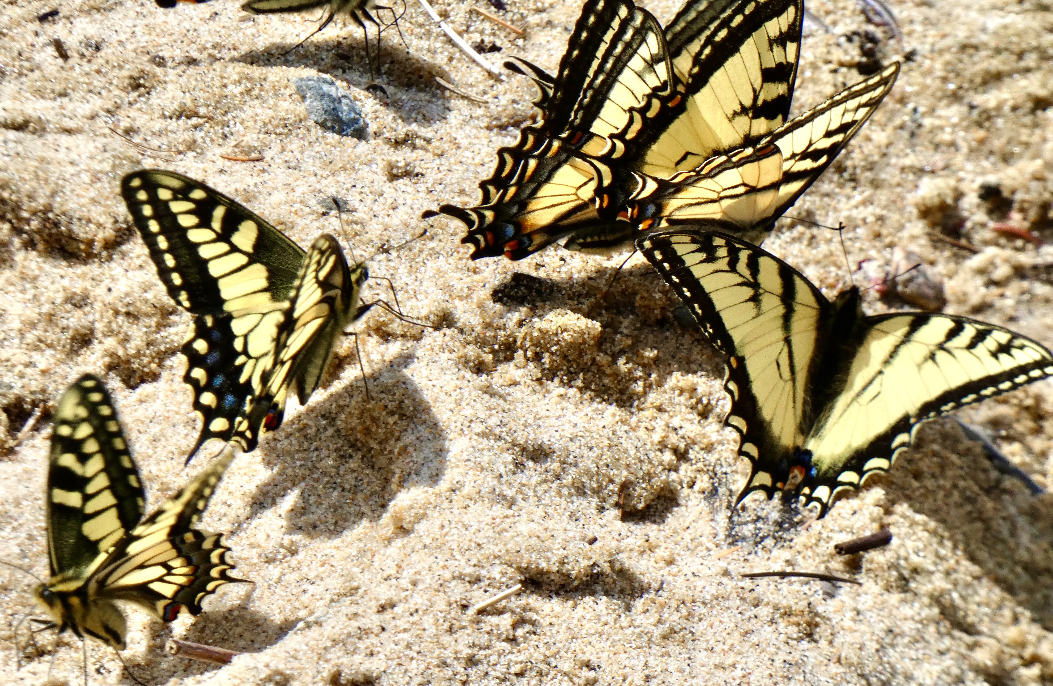 I walked down to the beach to look around at the 13-mile long lake and thought how nice it would be to spend a day or two or maybe a month or two fishing for lake trout and pike and walleye and sitting by a campfire at night talking to neighbors and sharing fish stories. But, after watching a swarm of yellow swallowtail butterflies have a very active conversation among themselves, it was time for us to leave delightful Carol Savage and beautiful Little Bear Lake and get back on the road to Prince Albert for the night.