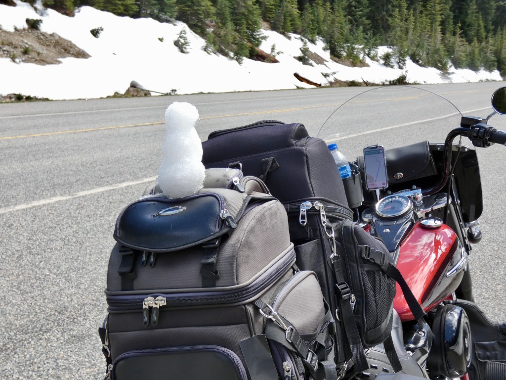 Since I was unable to ride the Icefields Parkway in Alberta this trip, I have to say that today’s ride may have been the best–or at least the most scenic–of all the rides on this trip. Snow covered mountains, glaciers, waterfalls–this ride had it all. I stopped repeatedly to add to my photo documentation of this trip, knowing that any picture I took wouldn’t truly reflect the incredible beauty all around me. But here are some of them: