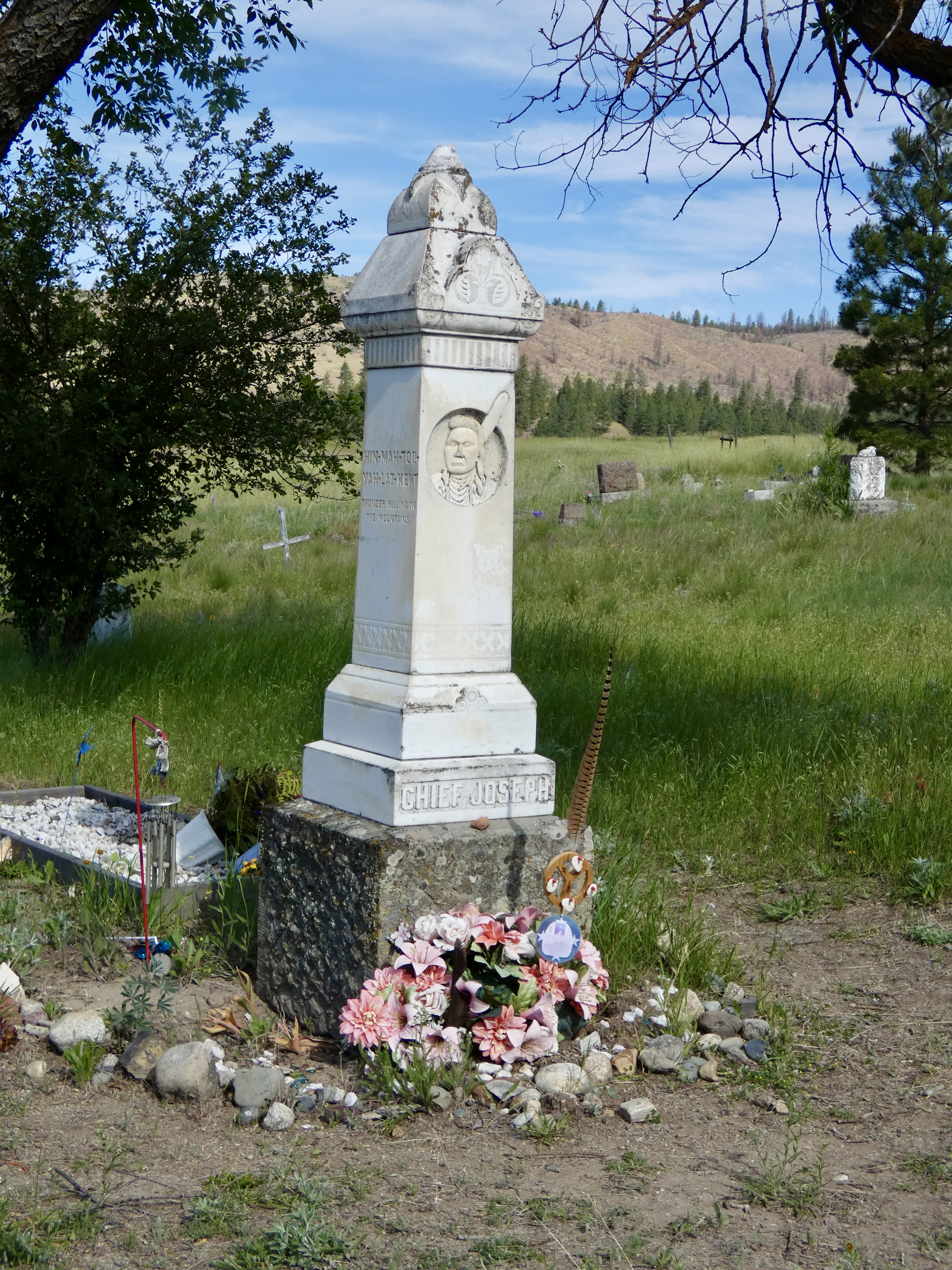 He was buried in the Nez Perce cemetery in Nespelem, Washington, and a small monument was erected above his grave in 1905. A trip to the site could do no more than pay respect to this courageous indigenous leader who was betrayed and suffered at the hands of the U.S. government. But pay my respects I did. And I remembered and reflected on his honor and dignity.