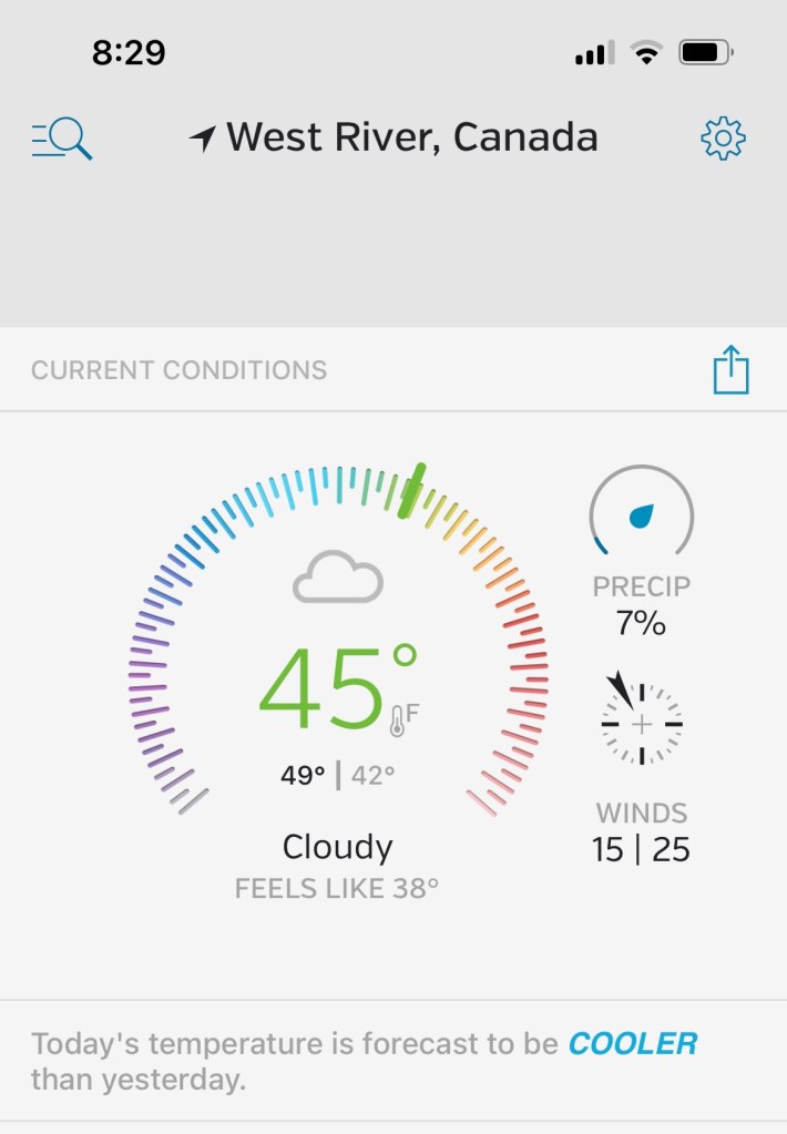 If there was a silver lining to today’s weather issues, it was that I had an opportunity to make sure my cold weather gear was working and that I remembered how to use it. For the first 40 miles or so of today’s ride, I had no heat from my jacket or gloves as 20-25 mph winds buffeted my bike. But I remembered a quirk of the Gerbing heated clothing system I use that requires me to turn the gear on AFTER I start the bike. Once I remembered that and switched the heat regulator off and then on again, blessed heat coursed through my gloves, down my sleeves and across my back. Aw, blessed heat. Riding in windy, cloudy, mid 40s temperatures is much more doable with heated gear. Today’s cold weather test was important, because conditions in Newfoundland tomorrow and the next day are expected to be wetter and colder than Nova Scotia today. We’re hoping to avoid snow. And moose.