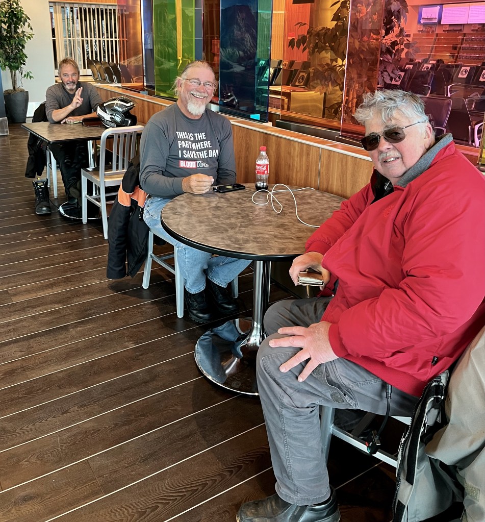 We’ve had to kill several hours in the lounge at the ferry terminal and everyone–including me–turns to their electronic devices to pass the time. But in a few hours we’ll fire up the bikes, ride them into the bowels of the massive sea-going ferry, try to get some sleep, and debark in seven hours in another Canadian province.