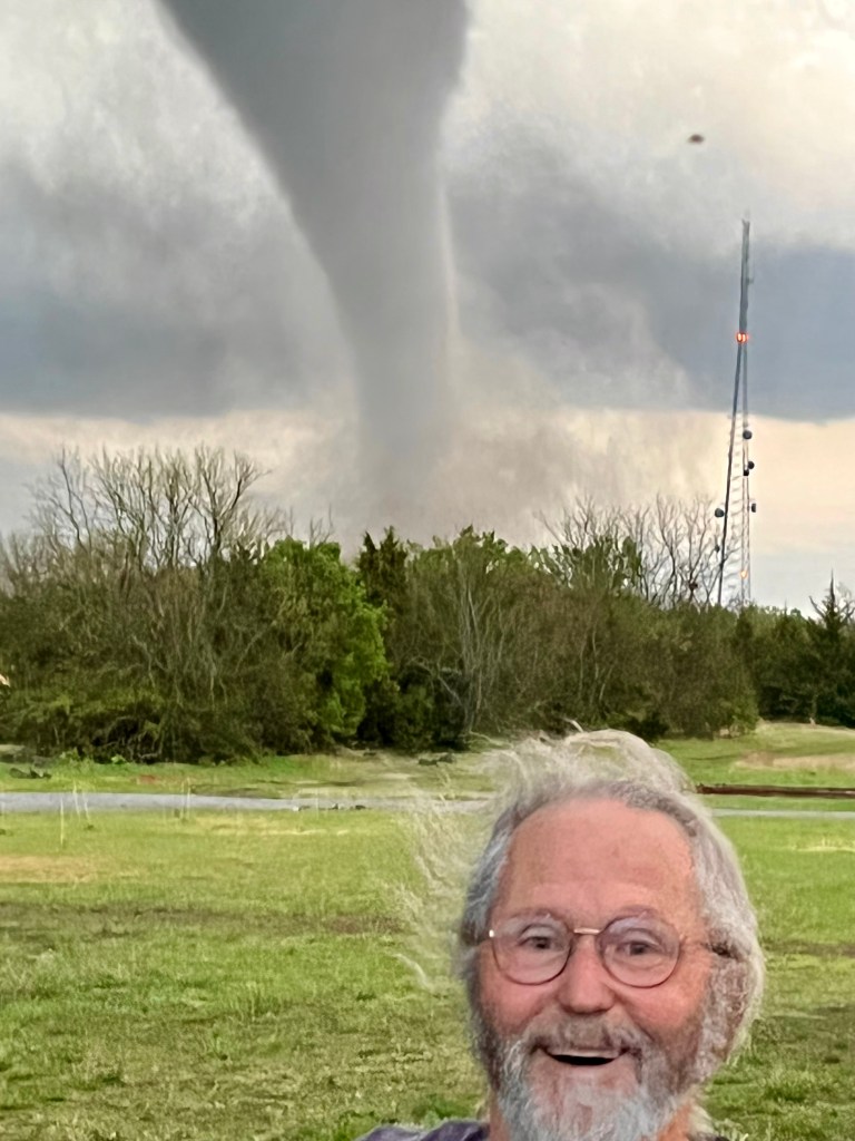 The last time I was here, Jon provided tornadic entertainment (see below) but today all he had to offer was temperatures in the 90s. And tomorrow will see triple digit temperatures. Weather seems to be more important to me when I’m on two wheels than when I’m on four-wheels with air conditioning.