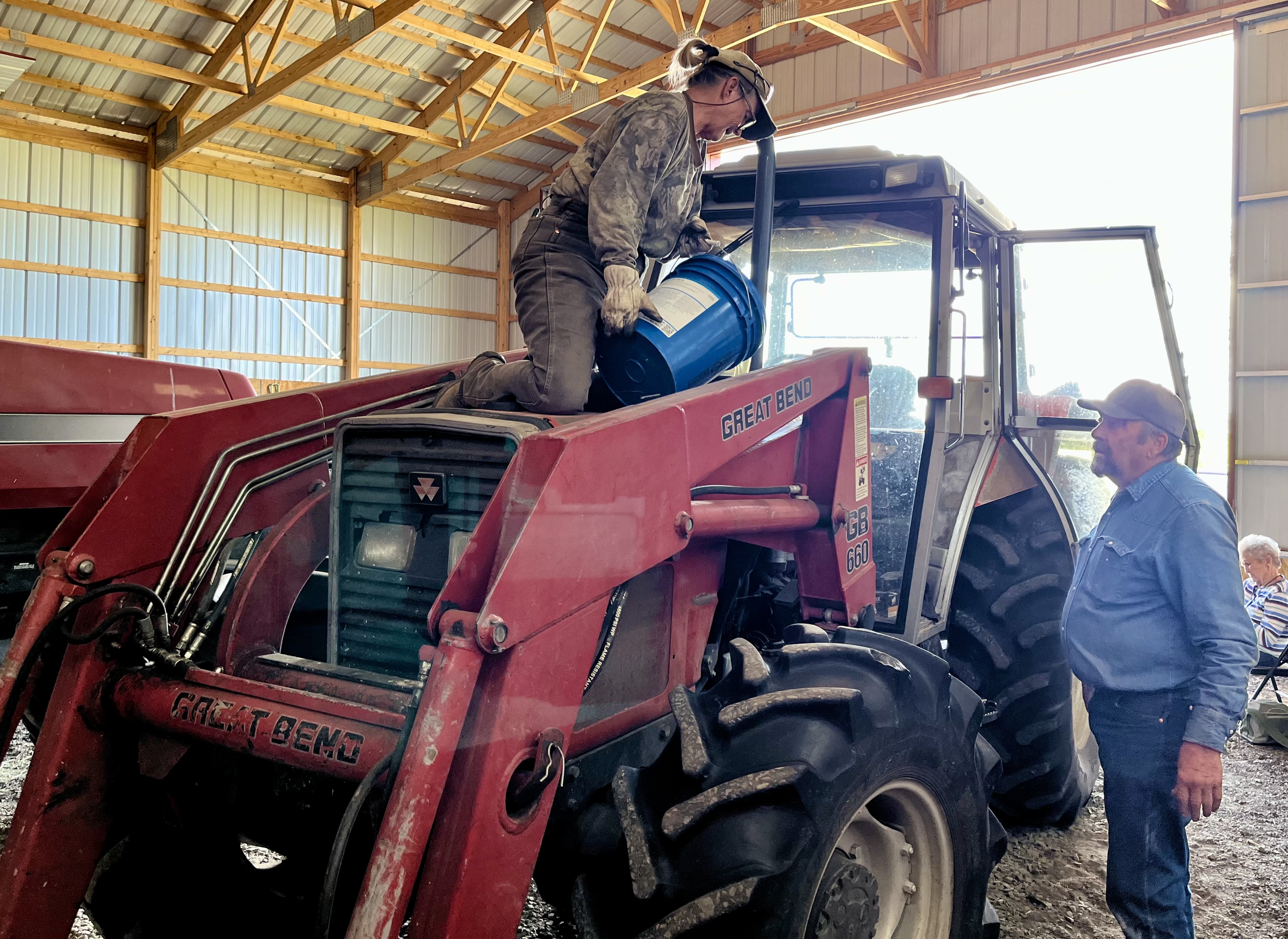 As expected, the day began with more oil changes in tractors and other mechanical work that needed to be done to keep machinery safe and operating. And there’s a lot of machinery on a ranch. Linda has, I think, five tractors and twice as many implements needed for a haying operation such as mowers, rakes, bailers, loaders and more. And they all have to be maintained and repaired. One of the biggest tractors that got serviced today took more than five gallons of oil to fill the crankcase after it had been drained.