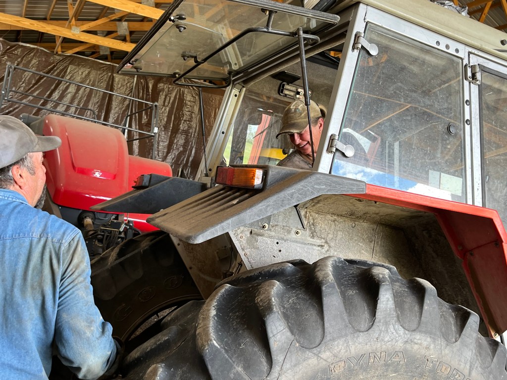 Today’s afternoon task was changing the oil in farm trucks and tractors. You can’t just drive these tractors to the nearest Jiffy Lube for an oil change. You do it yourself, and that’s what Doug and Linda did while I did my best to stay out of the way. Today, they finished two trucks and two tractors. Tomorrow will be spent finishing two other larger tractors and several other miscellaneous pieces of haying equipment that I can’t begin to name, unless “haying thingy” is a name.