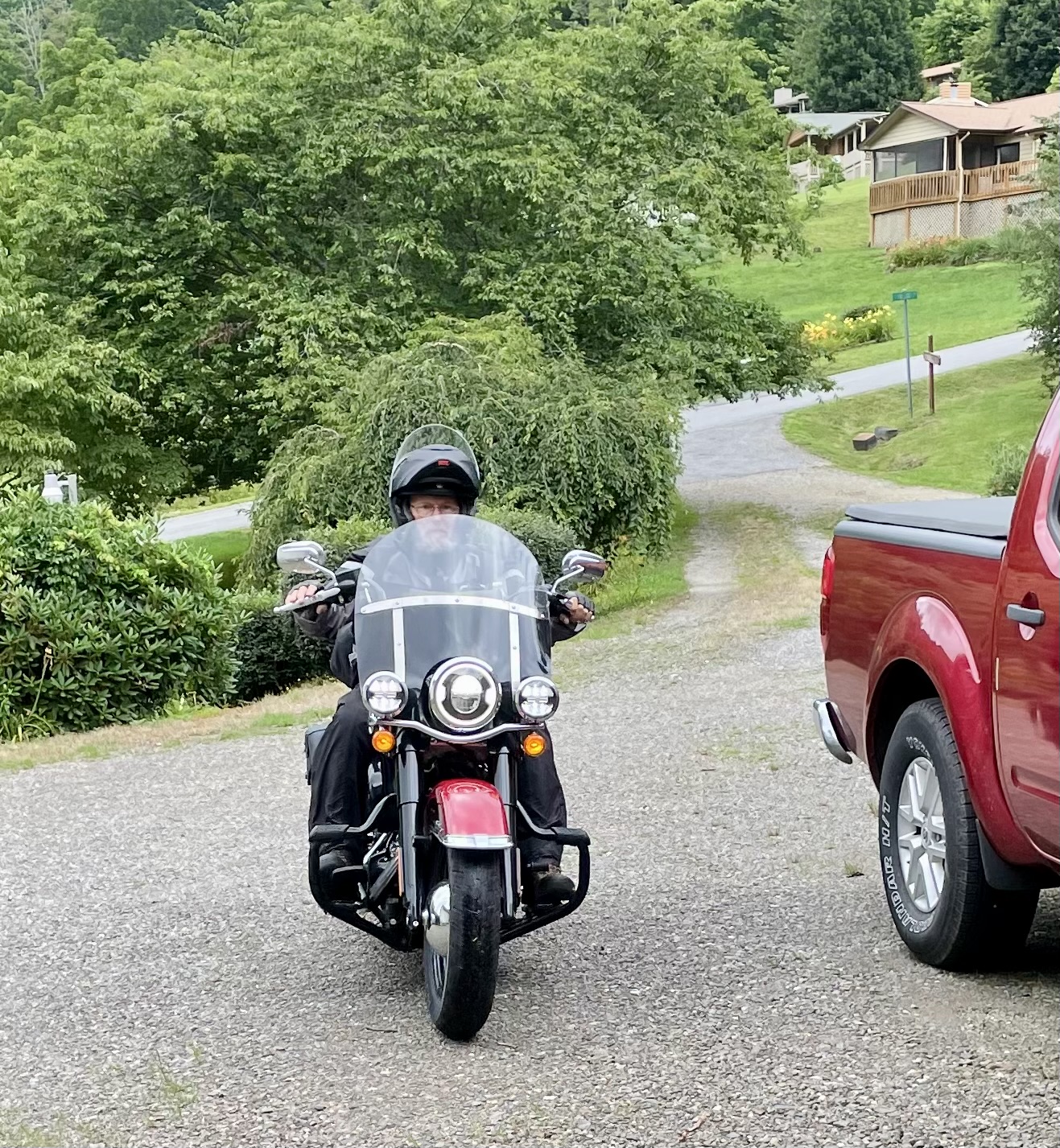 I only encountered an hour and a half of rain on the final run to Maggie Valley as I went through Nashville and Knoxville, and finished the final 310 miles in a little less than five hours. Gaining an hour as I moved into Eastern Daylight Time, I rolled into my driveway a few minutes before 1:00 p.m. still wearing the rain suit I put on this morning.