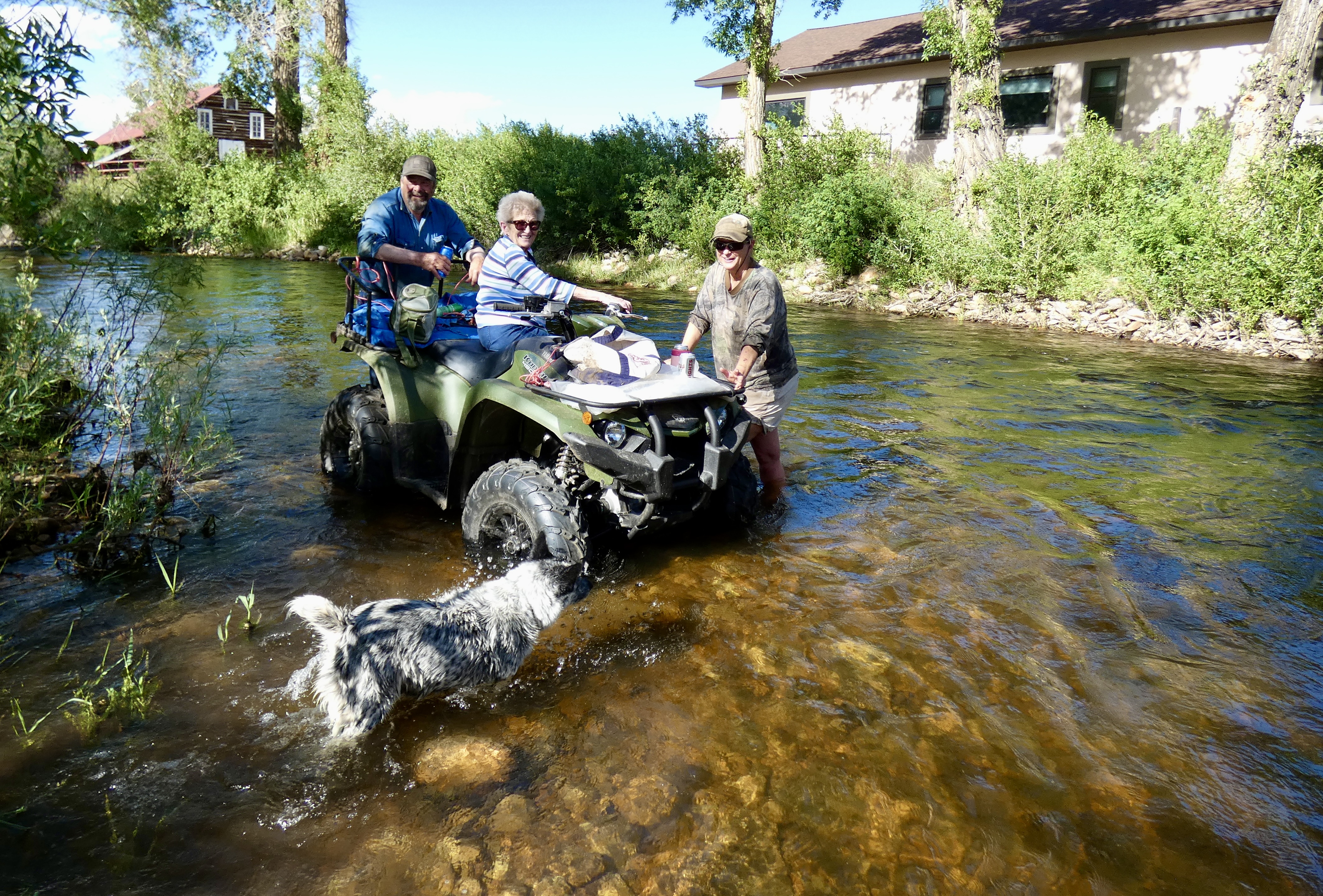 While today wasn’t terribly warm, it was warm enough to go to the Little Laramie River behind Linda’s house after the oil changes were done. We waded in the cool, clear water and threw rocks for the dogs to chase but never retrieve. It was a nice end to my first half-day on the ranch.